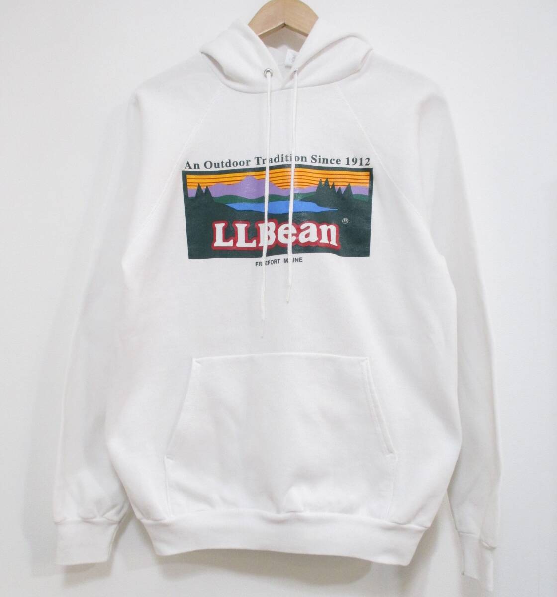 【L.L.Bean】80s USA製◆ビンテージ スウェットパーカー(白) エルエルビーン カタディンロゴ Hanes◆Lサイズ