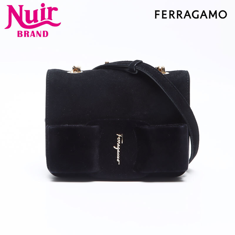 サルヴァトーレフェラガモ Salvatore Ferragamo ショルダーバッグ ヴァラリボン スエード ブラック