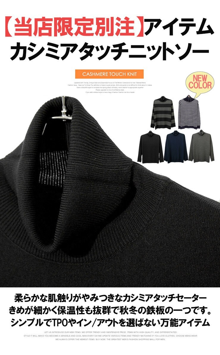 | 商品名 | 【新品】 M ネイビー ニット メンズ タートルネック カシミヤタッチ 無地 セーター |
