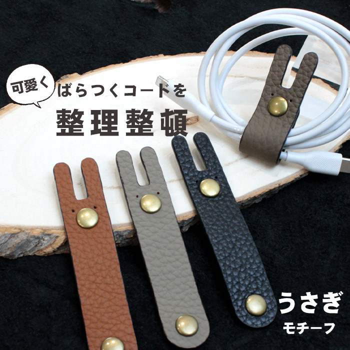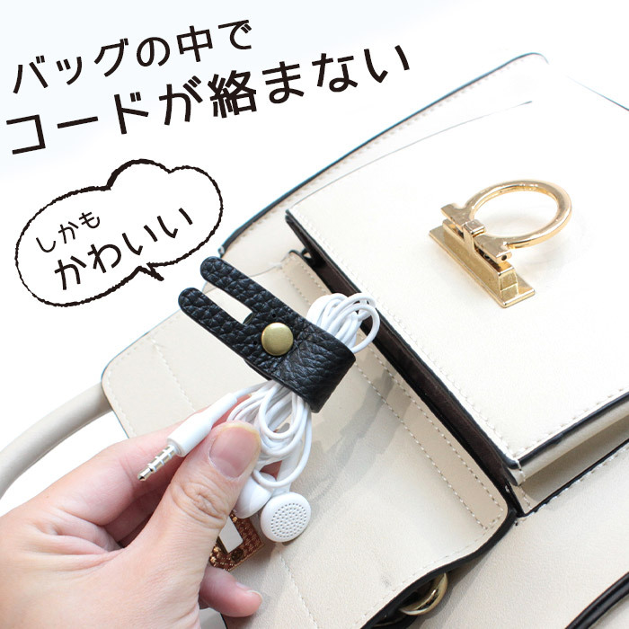 | 商品名 | イヤホン コードホルダー イヤホンケーブル まとめる 革 かわいい うさぎ【ブラック】| コードクリップ ケーブルホルダー コード 巻き取り 可愛い |