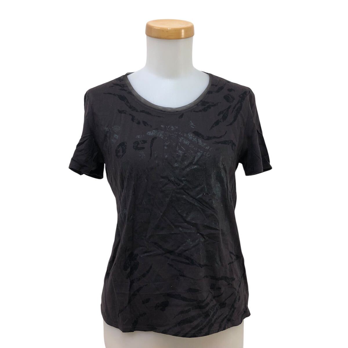 Nm303-15 EVEX by KRIZIA エヴェックス バイ クリツィア 半袖 プリント Tシャツ カットソー トップス ブラウン レディース 40 日本製