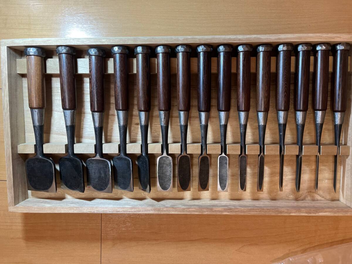 仕様:桐箱入り、15本組、鉄刀木柄、打ち桂