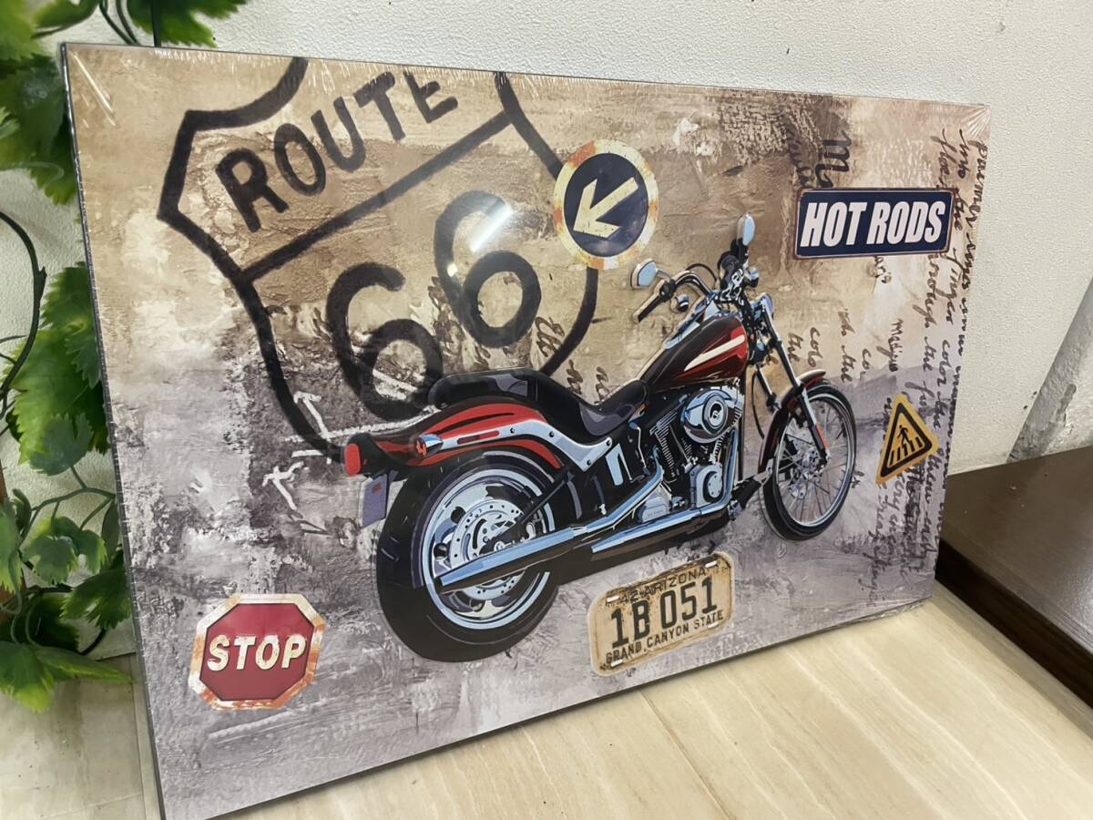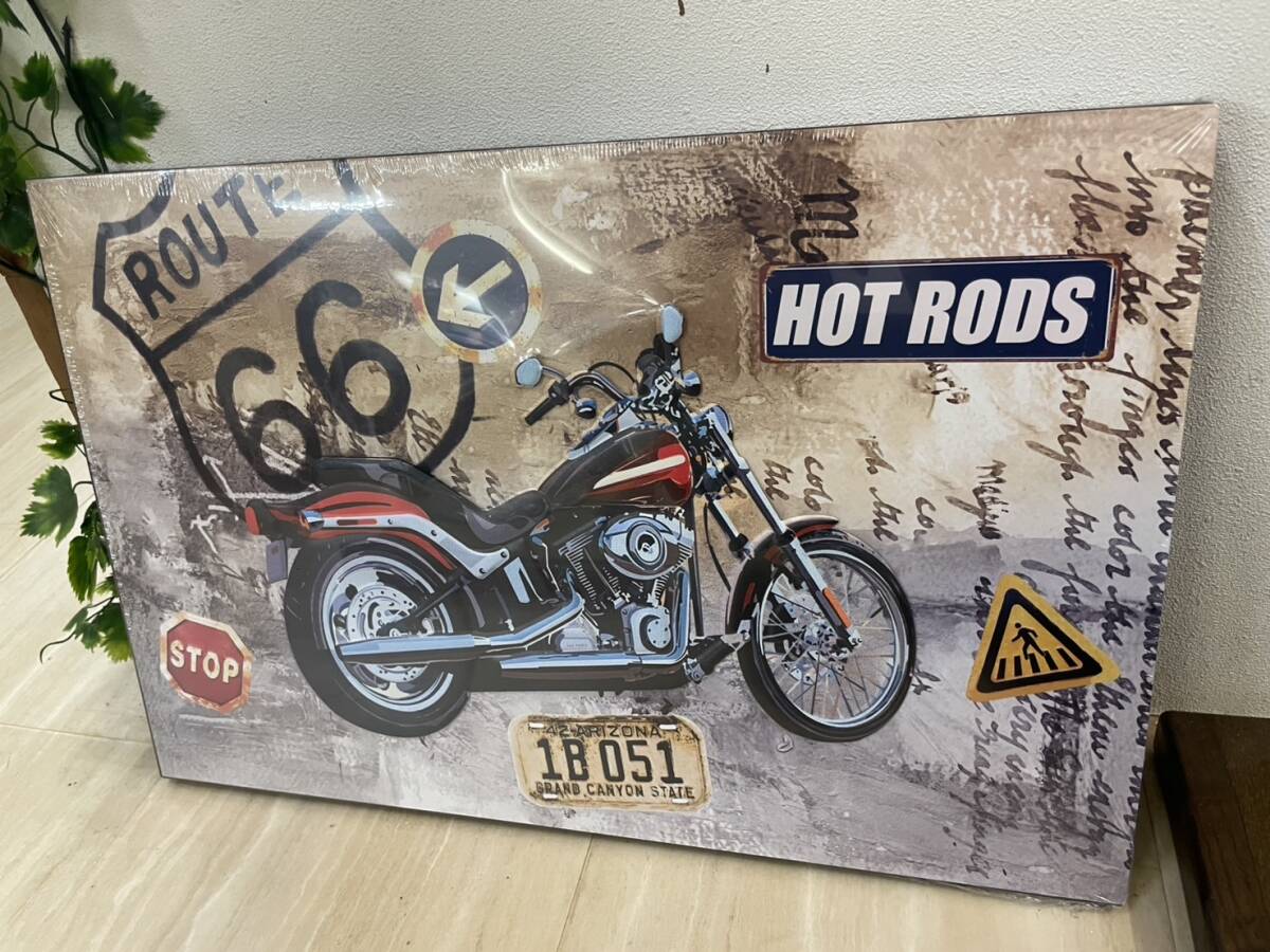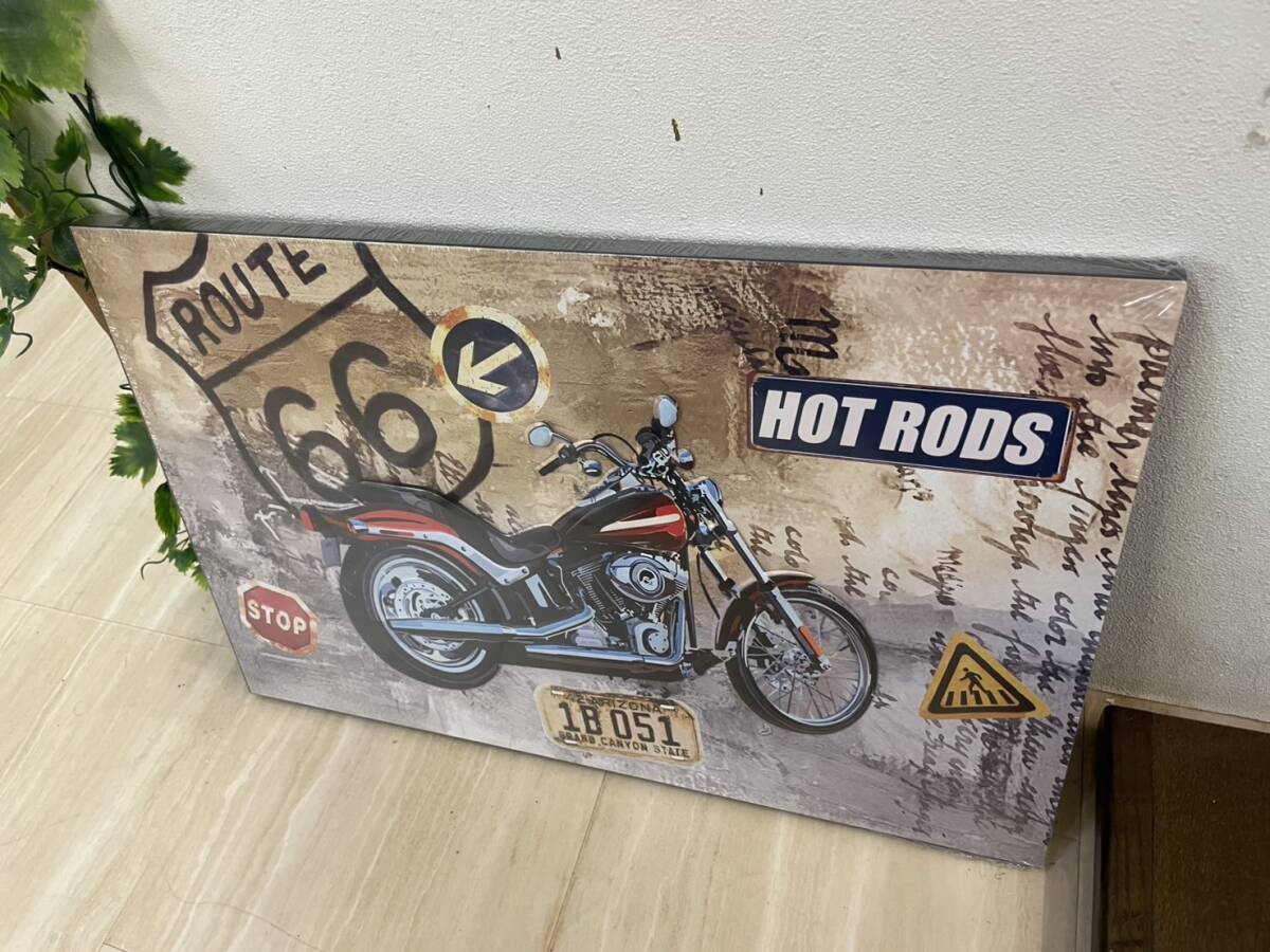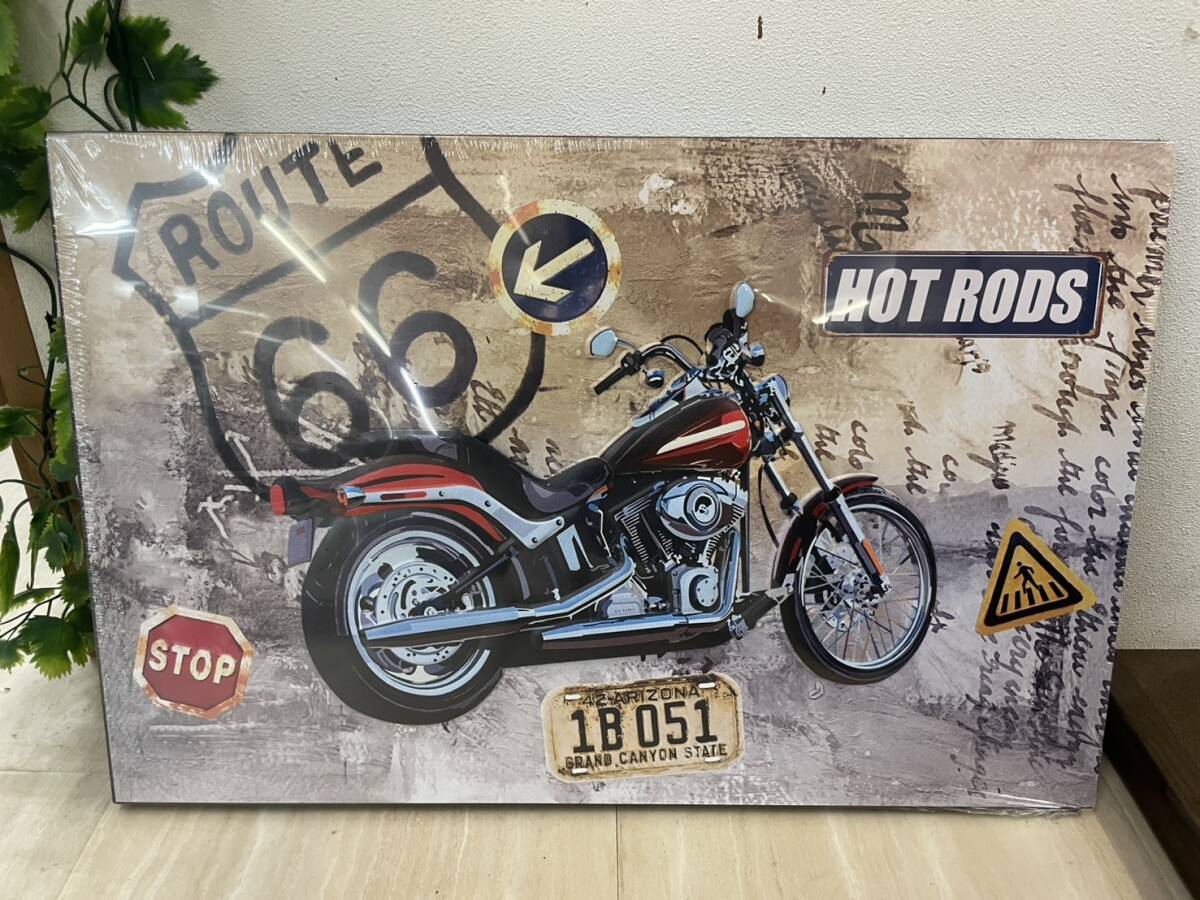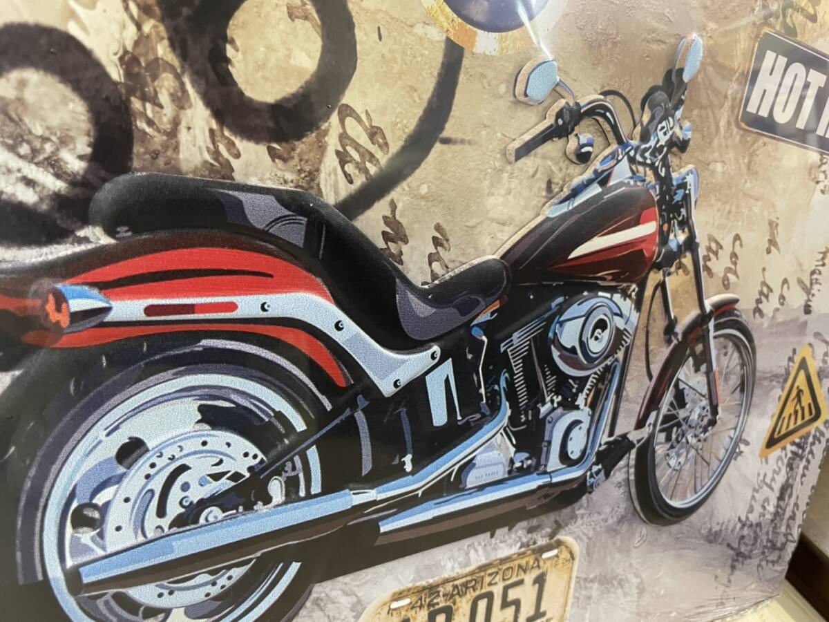 バイク アメリカン アートパネル ブリキ スチール 絵 アート 壁掛け パネル 絵画 スチールアート ブリキアート キャンバス クルーザー 男前