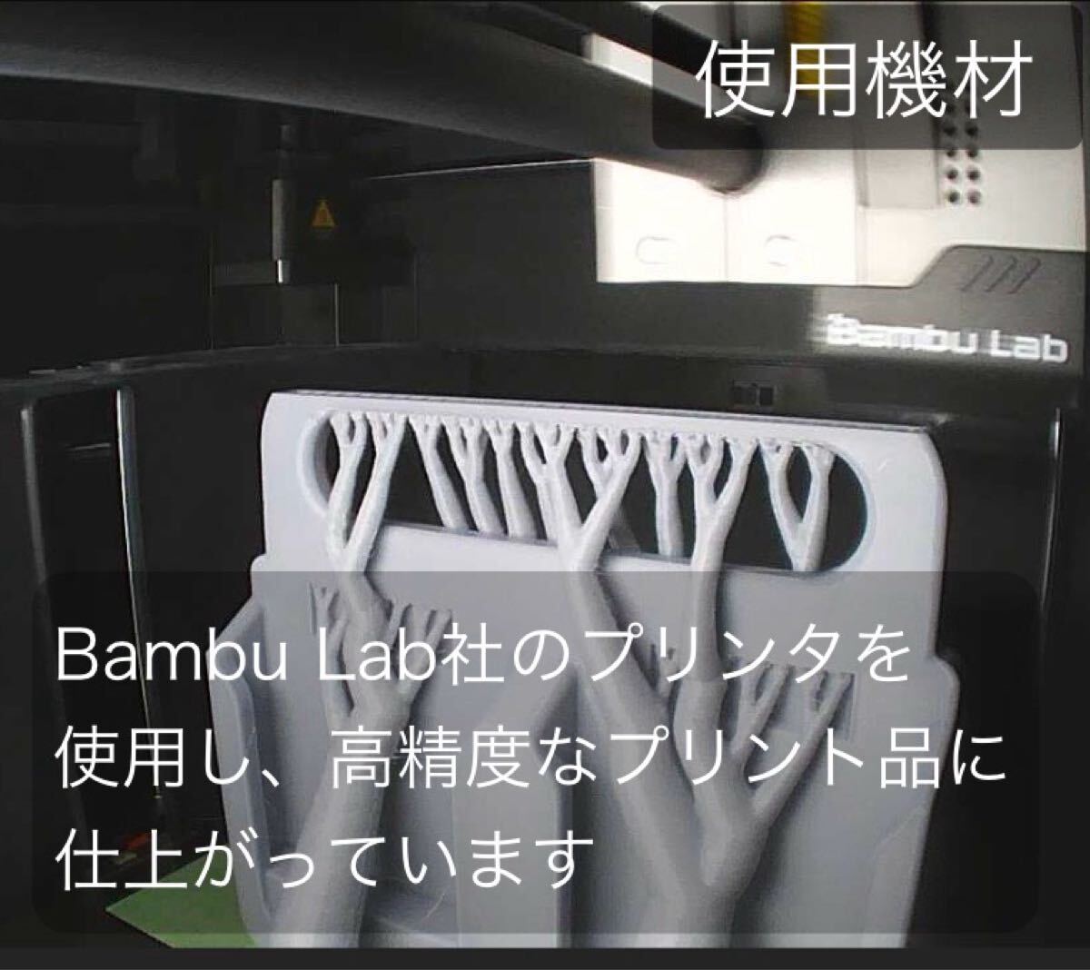 ・高精度で有名なBambu Lab社製のプリンタを使用し、従来の3Dプリント品とは一線を画す仕上がりになっています。