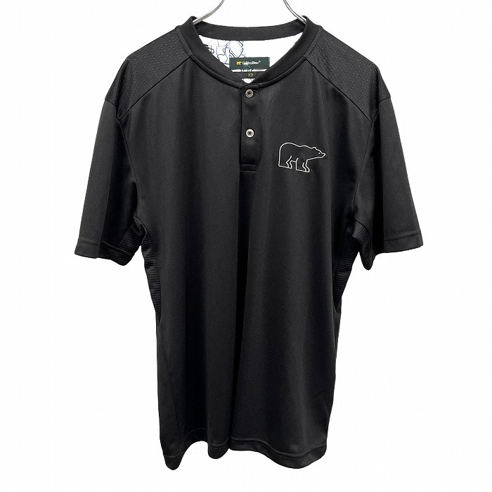 | 商品タイトル | ゴールデンベア Golden Bear Tシャツ 肩とサイドがメッシュ生地 ヘンリーネック クマの刺繍 半袖 ポリ100% L ブラック 黒×グレー メンズ |