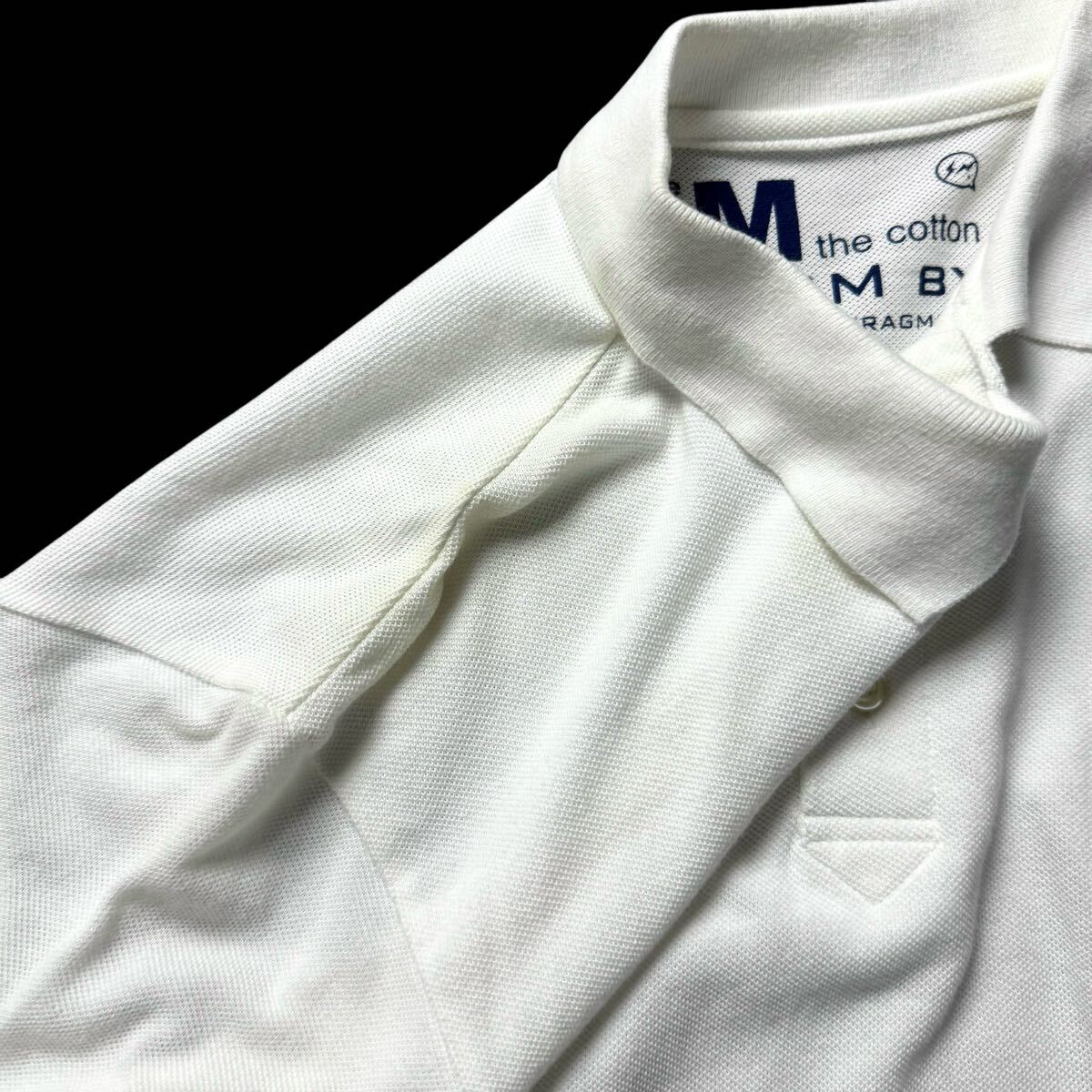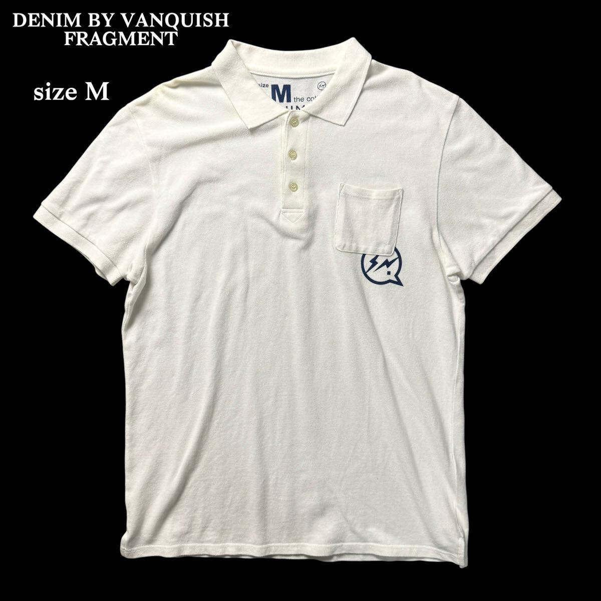 DENIM BY VANQUISH FRAGMENT 半袖 鹿の子 ポロシャツ ヴァンキッシュ フラグメント イナズマ プリント 白 ホワイト 藤原ヒロシ M