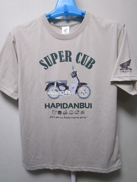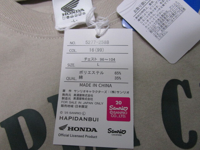 新品!ホンダxサンリオ・コラボ スーパーカブ はぴだんぶい プリントTシャツ・L(HONDA sanrio HAPIDANBUI SUPER CUBオートバイ)