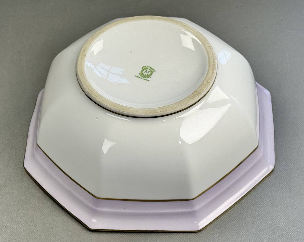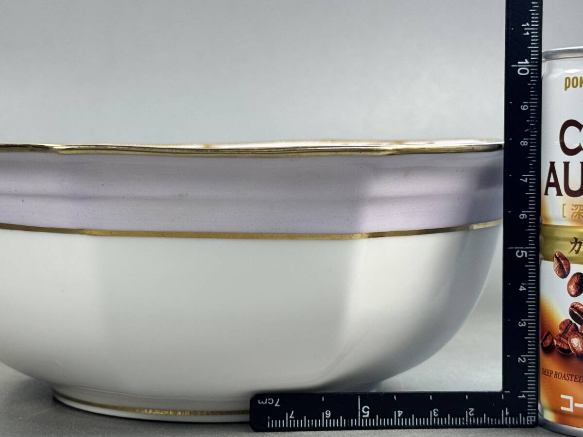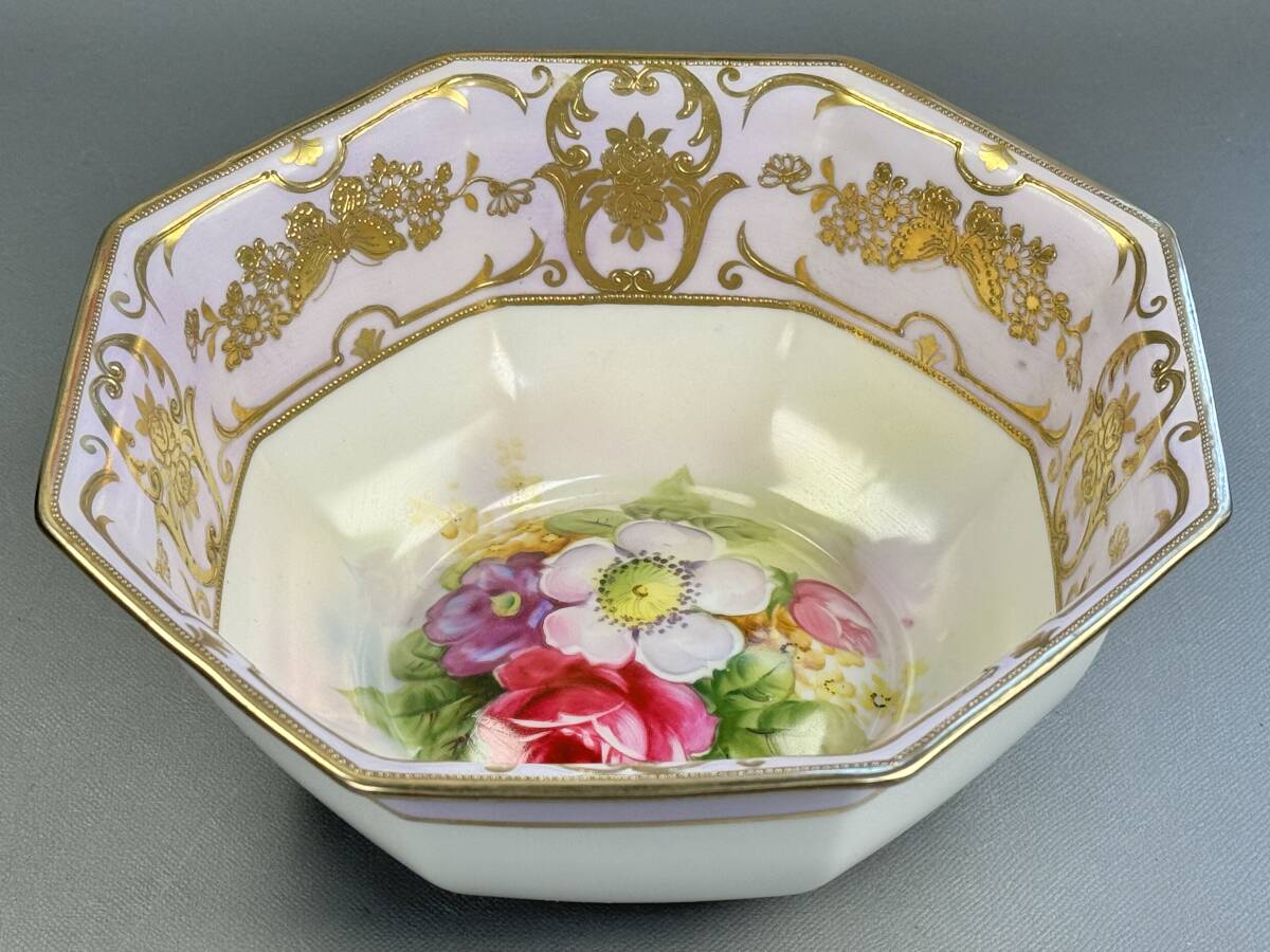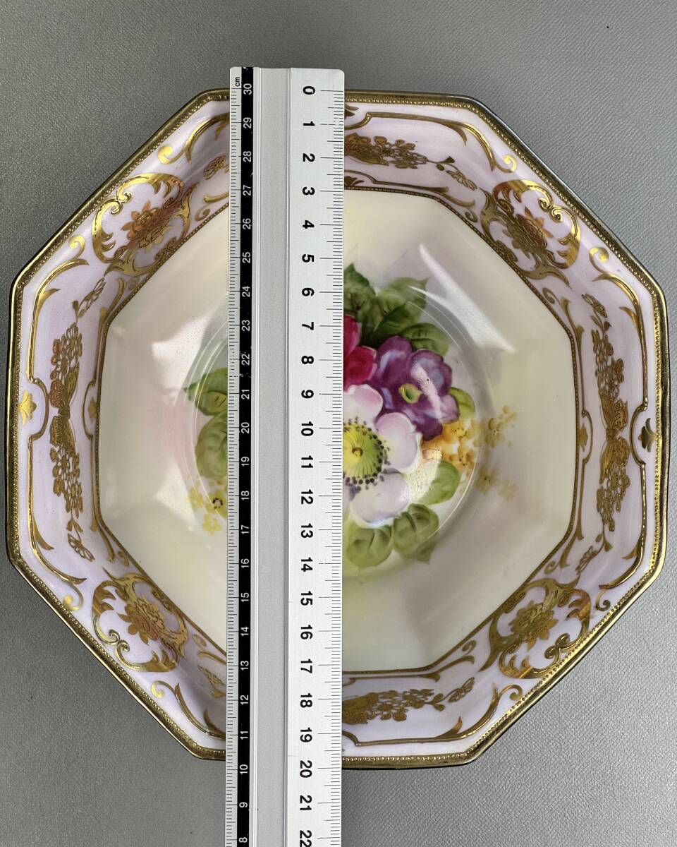 【偲】明治期Noritake オールドノリタケ 金彩薔薇 六角形 手描き 鉢 ボウル 高さ約8cm 直径約20cm r-342