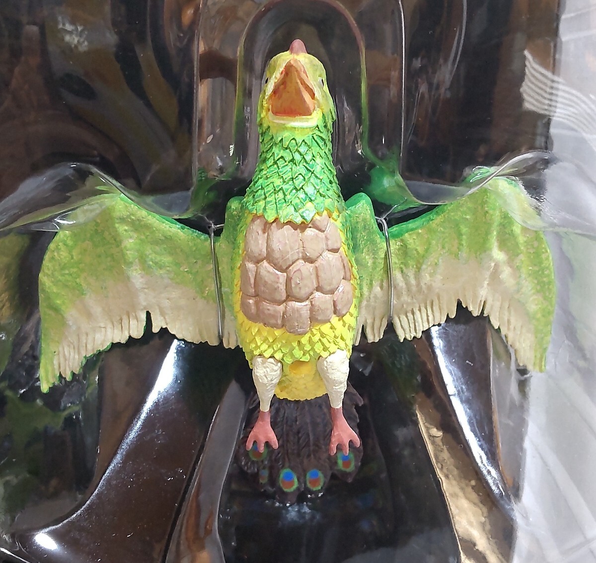 長期保管品です。購入時に中身を確認したあと、保管してました。飾ってませんので、光による変色は無いと思います。全高30cm位です。爪の所に、初期傷があります。他にも有るかも知れません。台紙からは取り出していません。箱は、傷み、汚れ等があります。