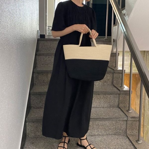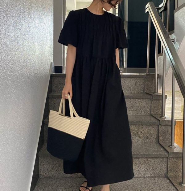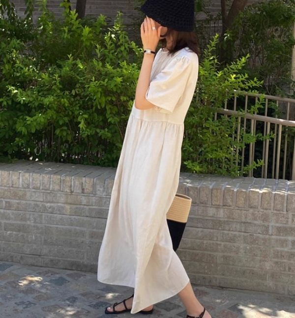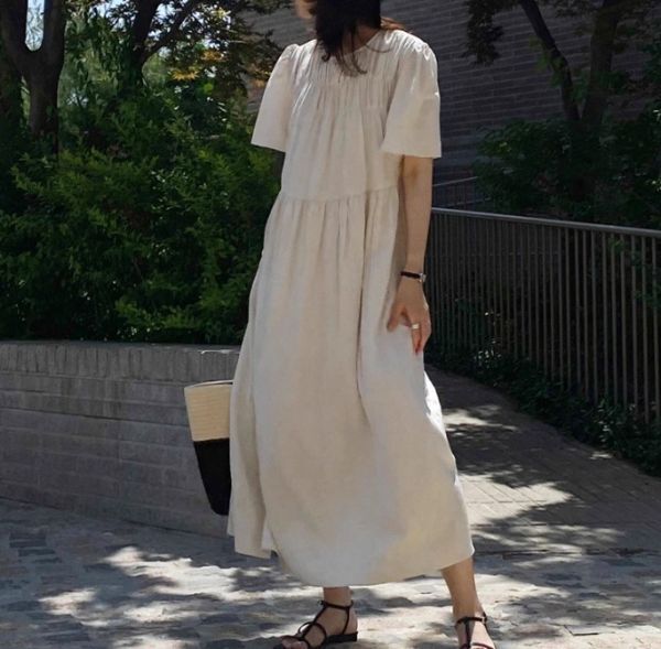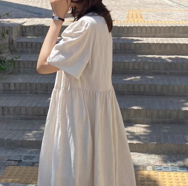 ★★★レディース ワンピース ロング ハイウエスト パフスリーブ EX10