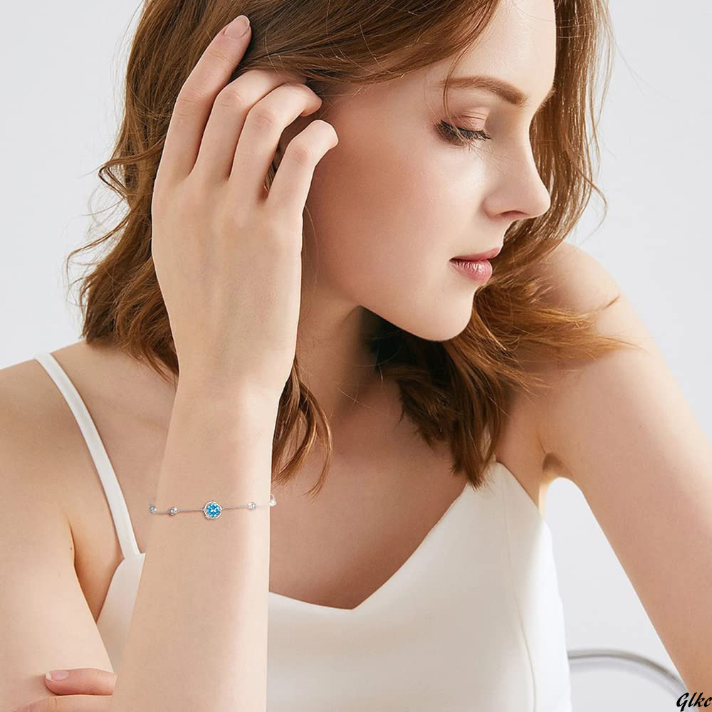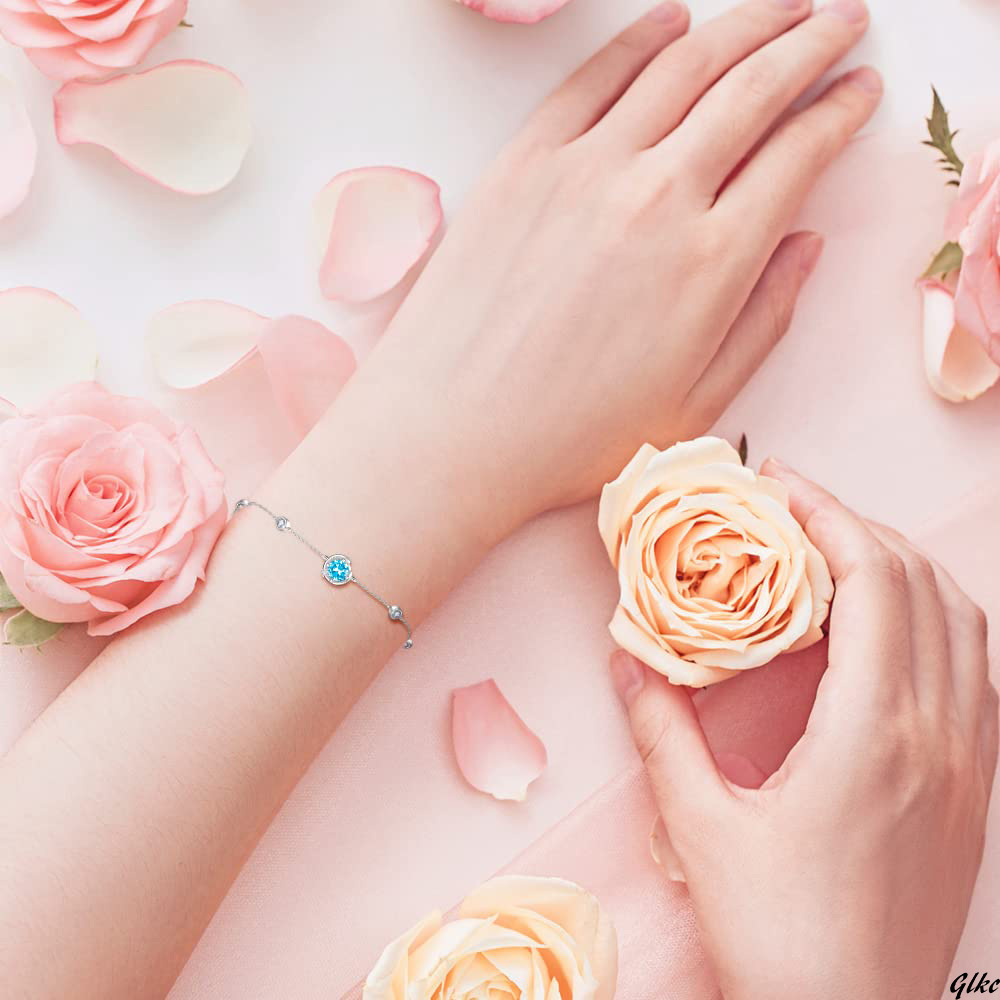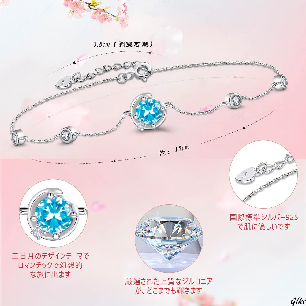 【三日月モチーフが象徴する「幸せ」と「美しさ」を込めたロマンチックなデザイン 誕生石ブレスレット】 11月ブルートパーズ レディース