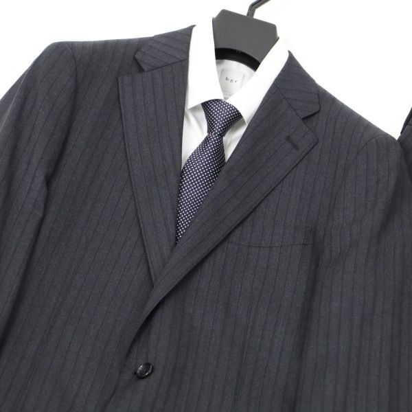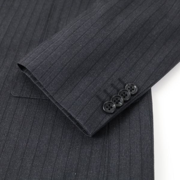 ** ブランド:DURBAN (ダーバン) ** 原産:日本製 ** 状態: 新品 訳有 未使用 紙タグなし ※ 理由あり品・・・ 訳あり理由:オーダーキャンセル品につき、 パンツ裾はシングルタイプにて裾上げ済み となっています。裾は約6cm裾出し可能です。 ** 色:ダークグレー系シャドーストライプ ** 表示サイズ:AB7 ** 実寸サイズ(単位cm) ※多少の誤差はご了承ください: ジャケット:肩幅46身幅55着丈75袖丈63 パンツ:ウエスト幅46ウエスト周り92 ヒップ55モモ幅34.5すそ幅20股下丈79 "** 仕様: ジャケット:総裏、センターベント パンツ:ノータック。裾は裾上げ済み。" ** 定価:106,700円 "** 商品説明: 確かな技術をベースにトラディッショナル、 クラッシックなメンズウェアブランドとして 人気を博してきたブランドD'URBAN(ダーバン)。 D'URBAN(ダーバン)のパーソナルオーダー仕様によるシャドーストライプスーツです。 スタイリッシュなグレー系の色合いに、ほのかに光沢を感じる繊細なストライプが特徴。 上質なウール素材を使用し、総裏仕立てで真夏を除く10マンスのシーズンを快適にご着用いただけます。 日本製ならではの緻密な縫製が、長く愛用いただける確かな品質を物語ります。 第一印象が大切な場面に、自信を添えてくれる一着です。 016-ylw-WW-[ew-xee]" ◆ その他 ・スーツのみの出品となります。 写真に写っているシャツ、ネクタイ等は 含まれておりません(イメージです)。 ・オークション出品のため、キャンセルや 返品は お受け出来ないことをご了承ください。 もし、 どうしても返品をご希望される場合は、 落札に より発生する落札手数料および送料を ご負担 ください。 (※未使用の場合に限ります) ・まれにヤフオク出品の際の撮影中や保管中 に自然についた微スレ、微キズ程度が 生じる 場合があることをご了承ください。 (事前に生じたダメージ等については、 必ず 説明文中に記載するようにしております) ご不明な点はご入札前にご質問ください。 | ||