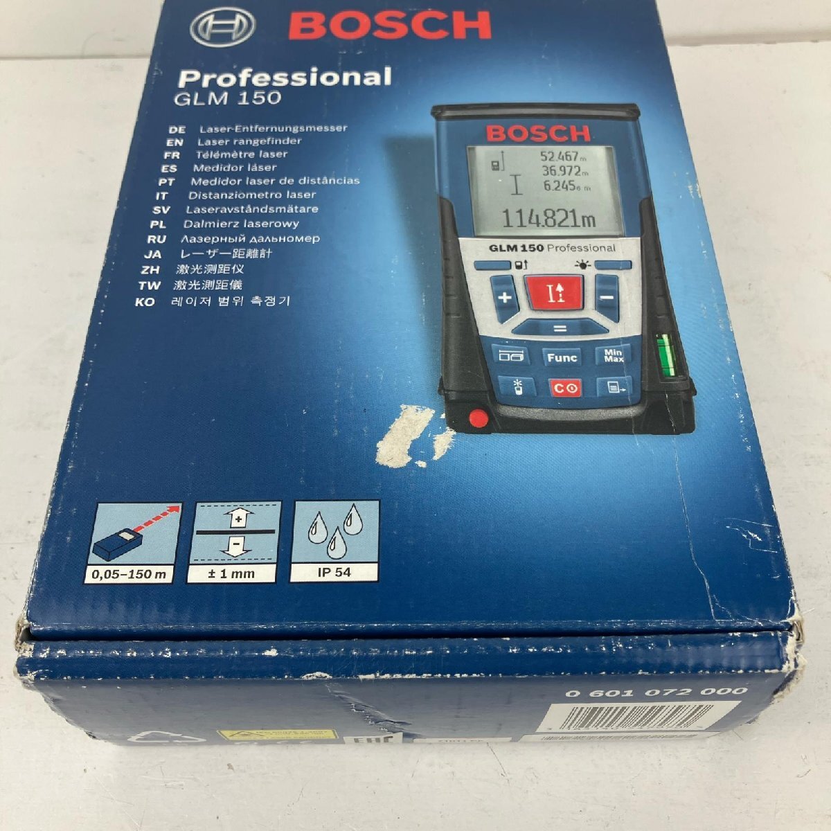 ЗЗ BOSCH ボッシュ 単三電池×4 赤色レーザー レーザー距離計 取説 ケース 箱付 GLM150 ネイビー 目立った傷や汚れなし