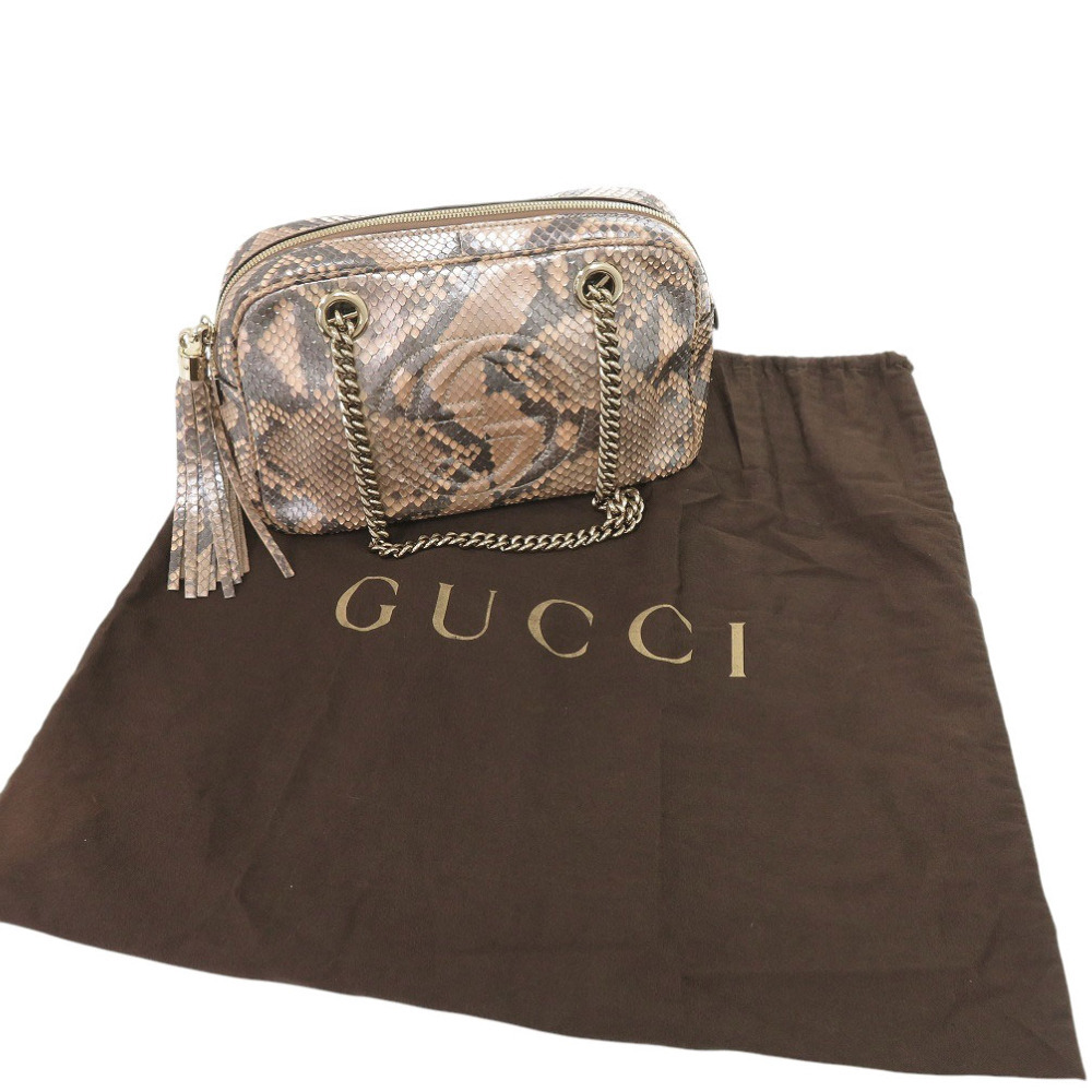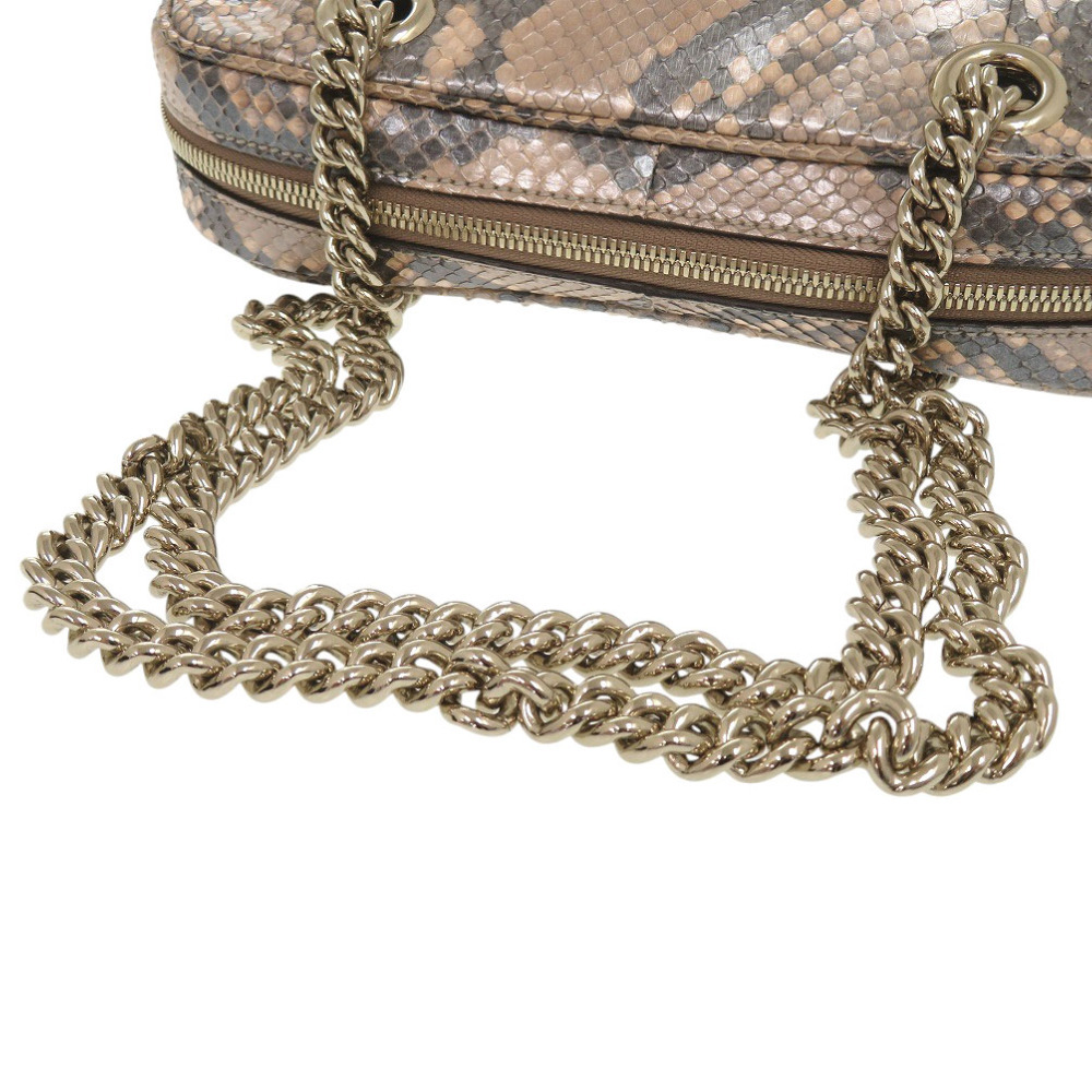 美品 グッチ ソーホー インターロッキングG チェーン ショルダーバッグ 308983 520981 パイソン/レザー ベージュ ハンドバッグ 1079 GUCCI