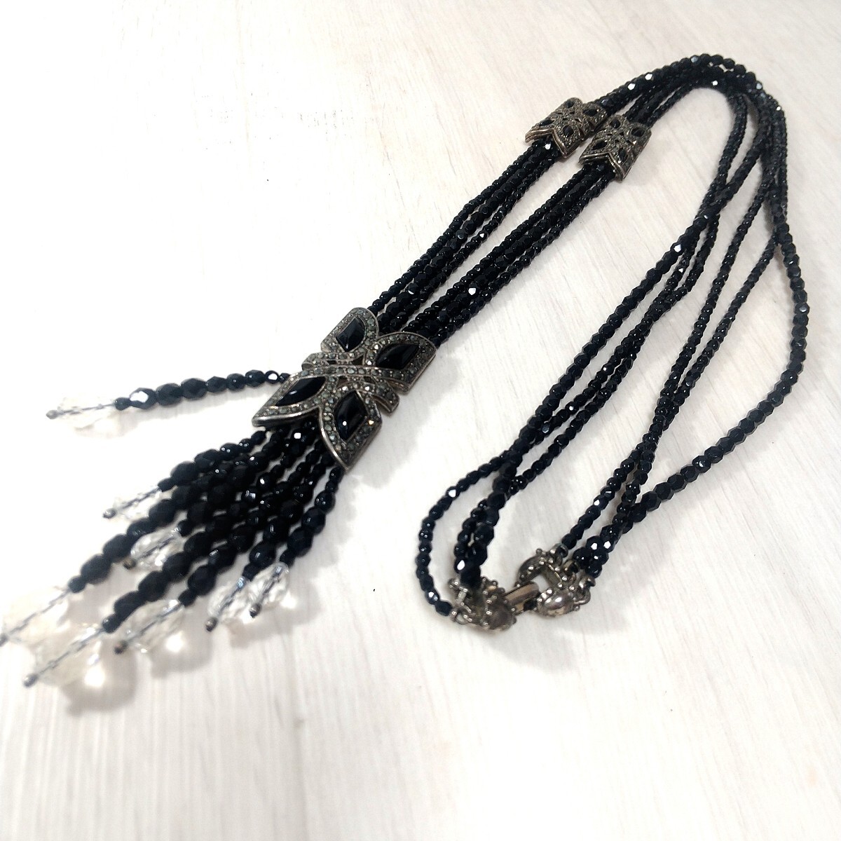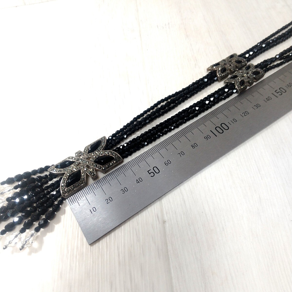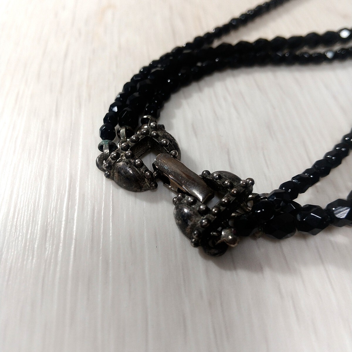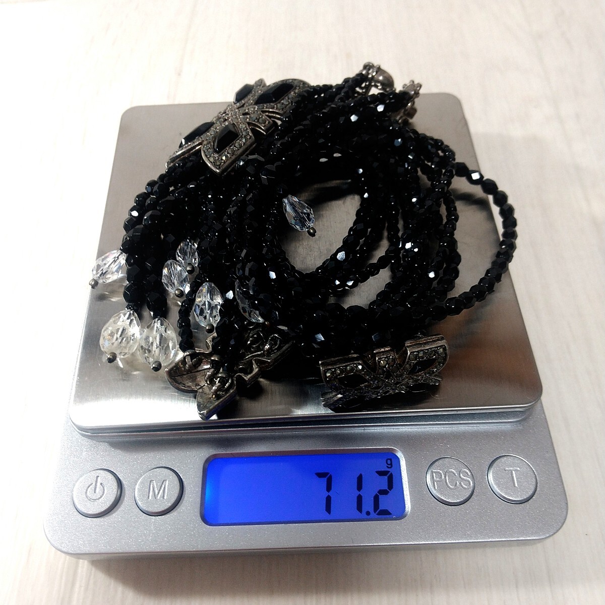 超 豪華 オニキス 水晶 天然石 ネックレス 3連 80cm 71.2g ロングネックレス アクセサリー 609H