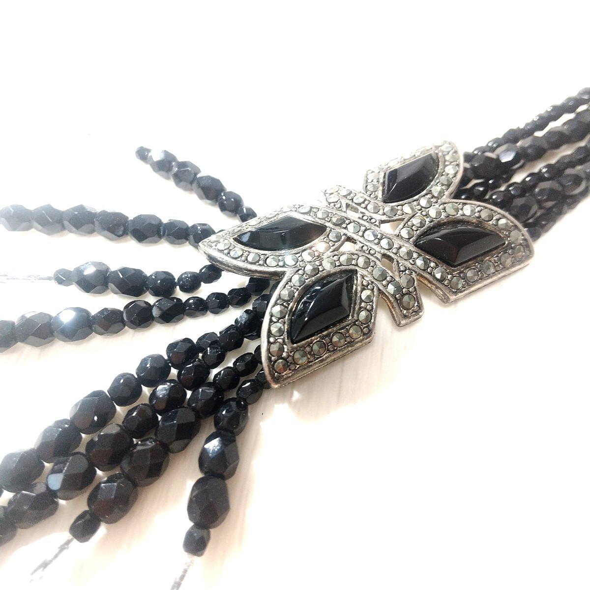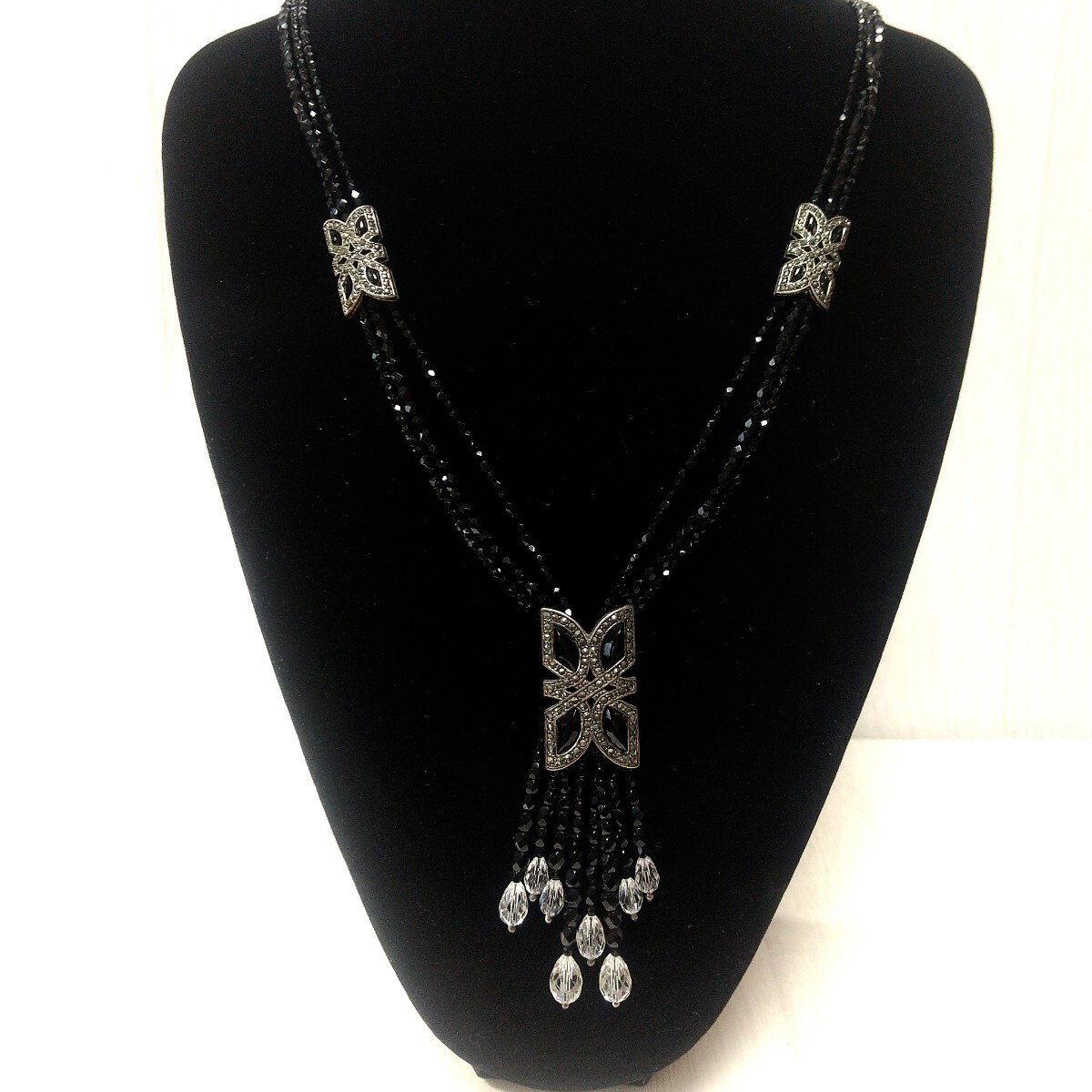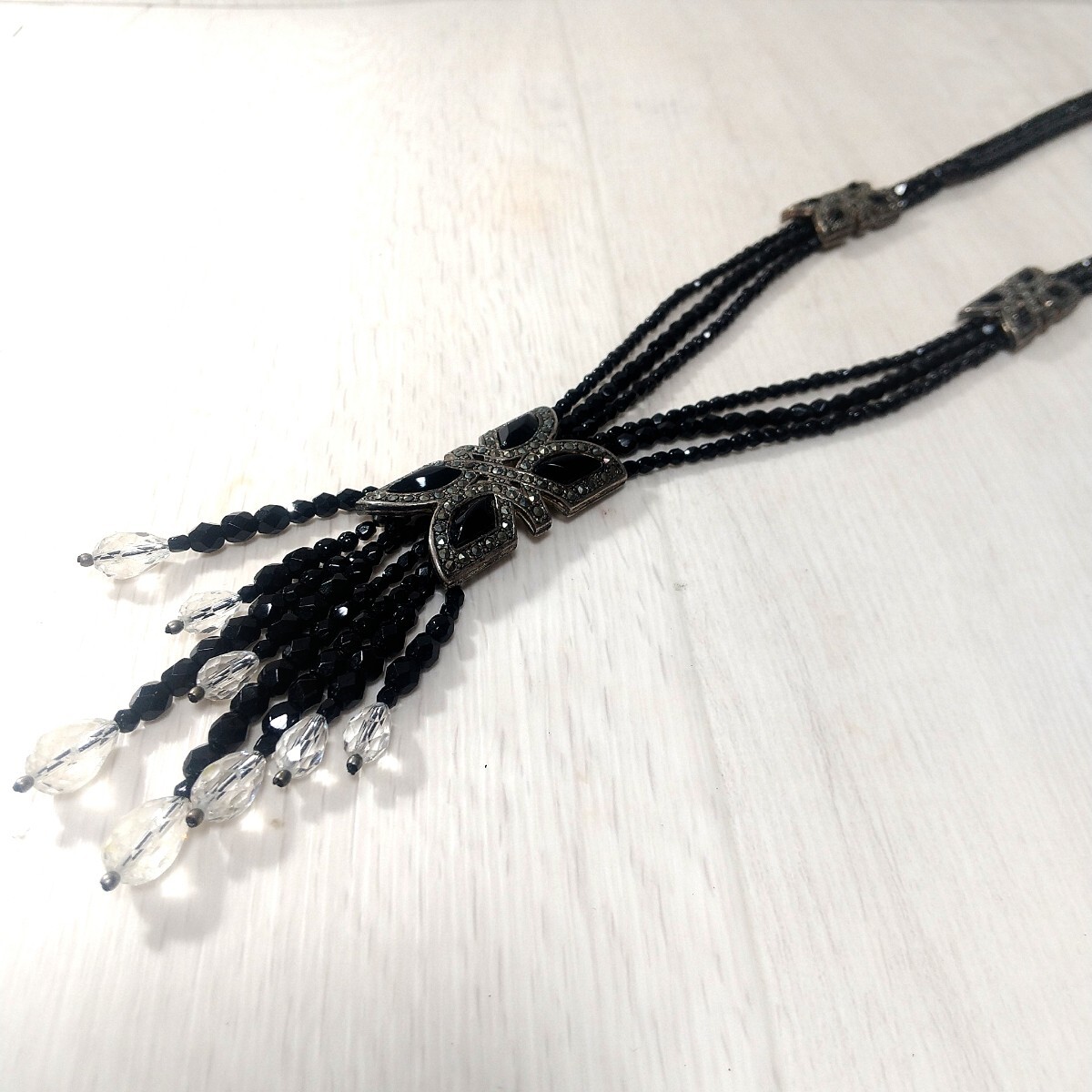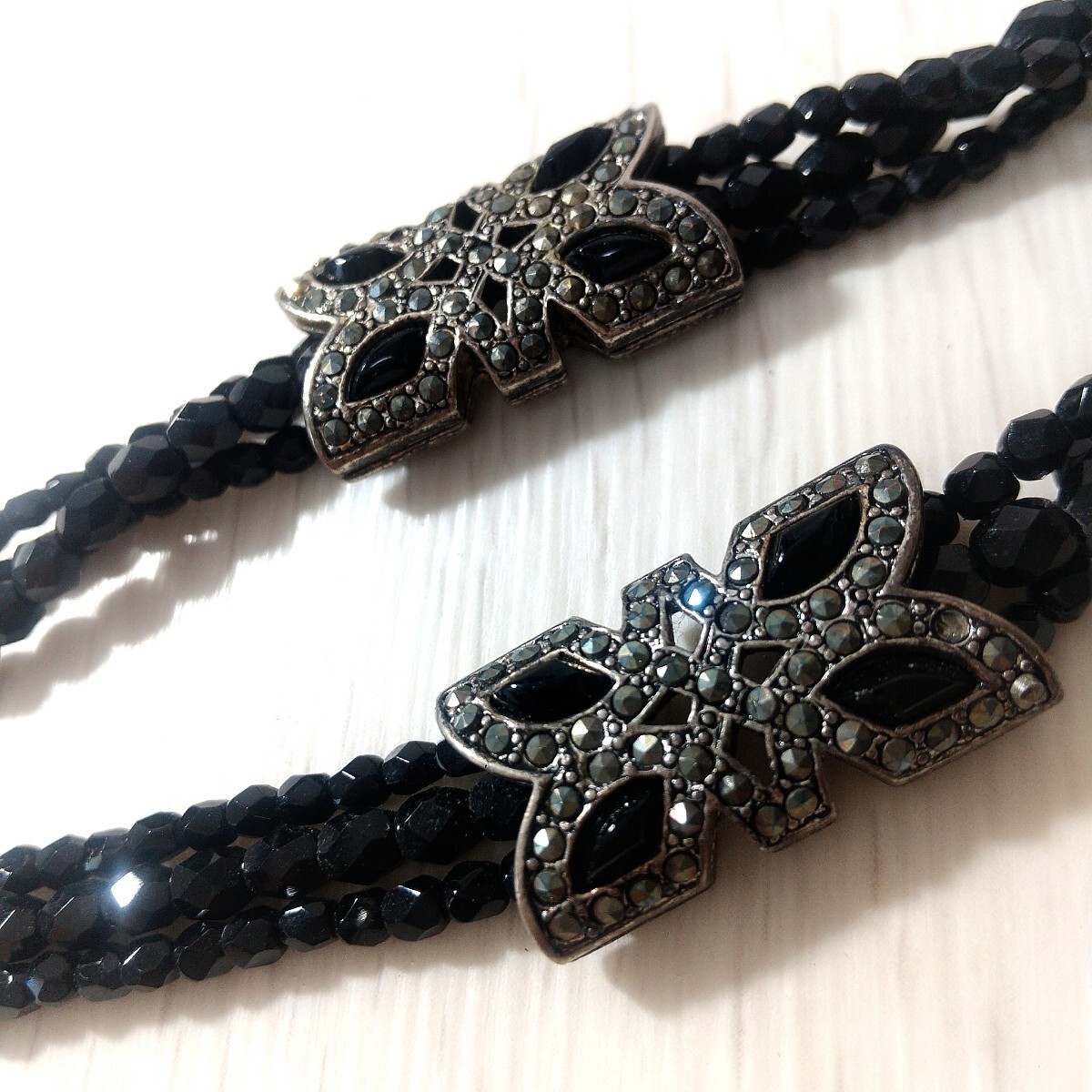 超 豪華 オニキス 水晶 天然石 ネックレス 3連 80cm 71.2g ロングネックレス アクセサリー 609H