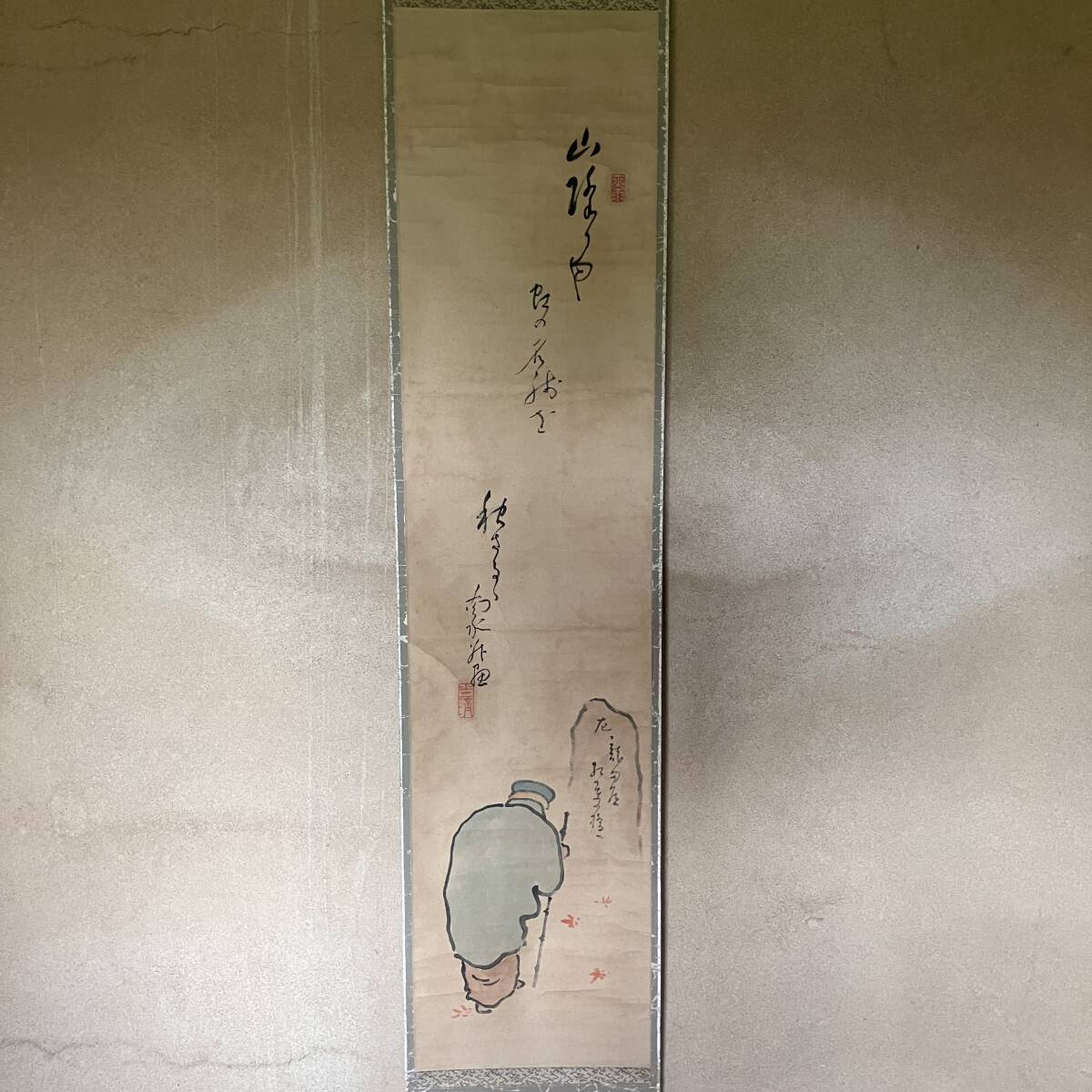 【真作保証】生田南水 『秋ノ人物』掛軸 日本画 俳句 俳画 墨蹟 書画 掛け軸 四天王寺 肉筆 共箱付き25.5.1-3