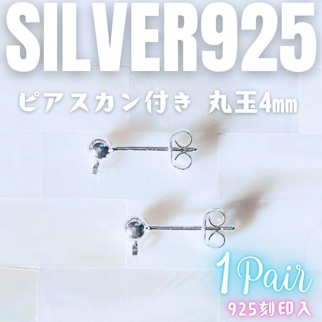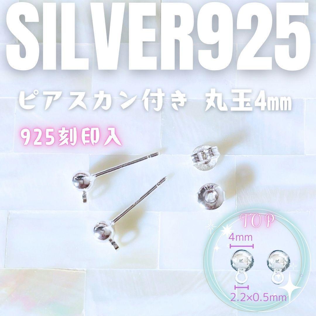 定番の ピアス金具 スタッドタイプの 4mm丸玉カン付き です。