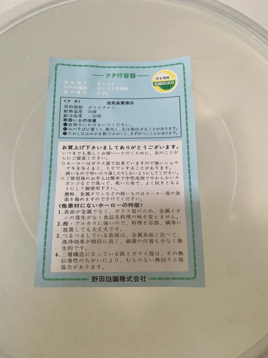 ☆新品 野田琺瑯 ホーロー 片手鍋 ボール 蓋付 2個セット☆