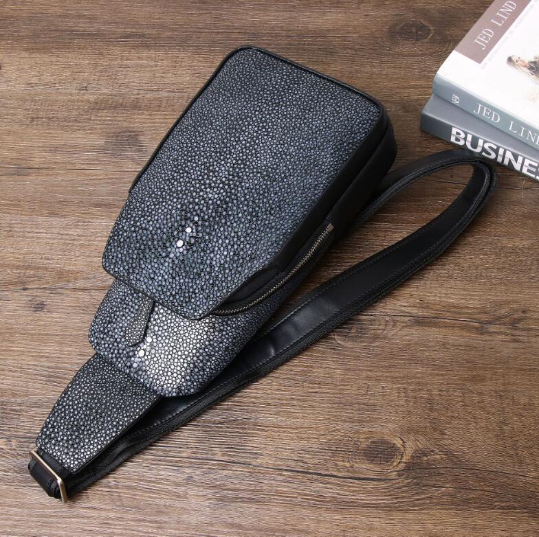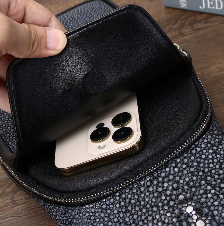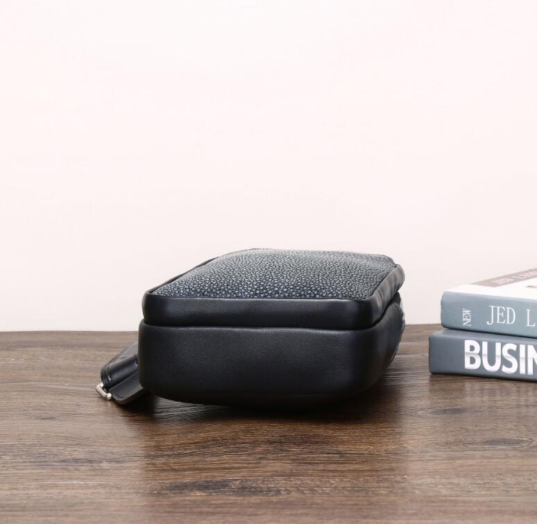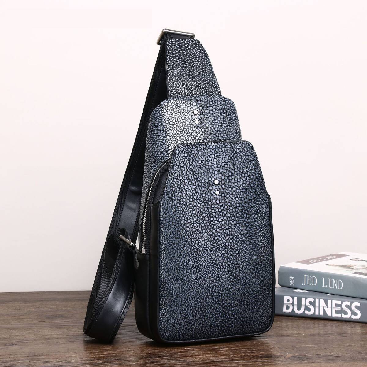 新入荷高品質 エイ革 ショルダーバッグ ガルーシャ スティングレイ ブラック黒メンズ 斜め掛け レザー本革 ポリッシュ加工 カバン 鞄
