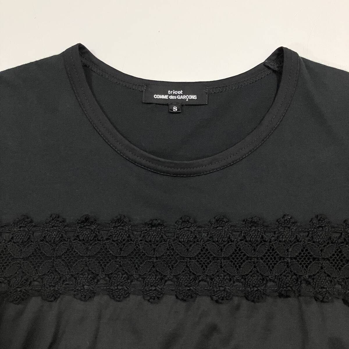 AD2013 tricot COMME des GARCONS レース ボーダー 切替 半袖 カットソー 黒 Sサイズ トリココムデギャルソン Tシャツ Tee archive 5060015