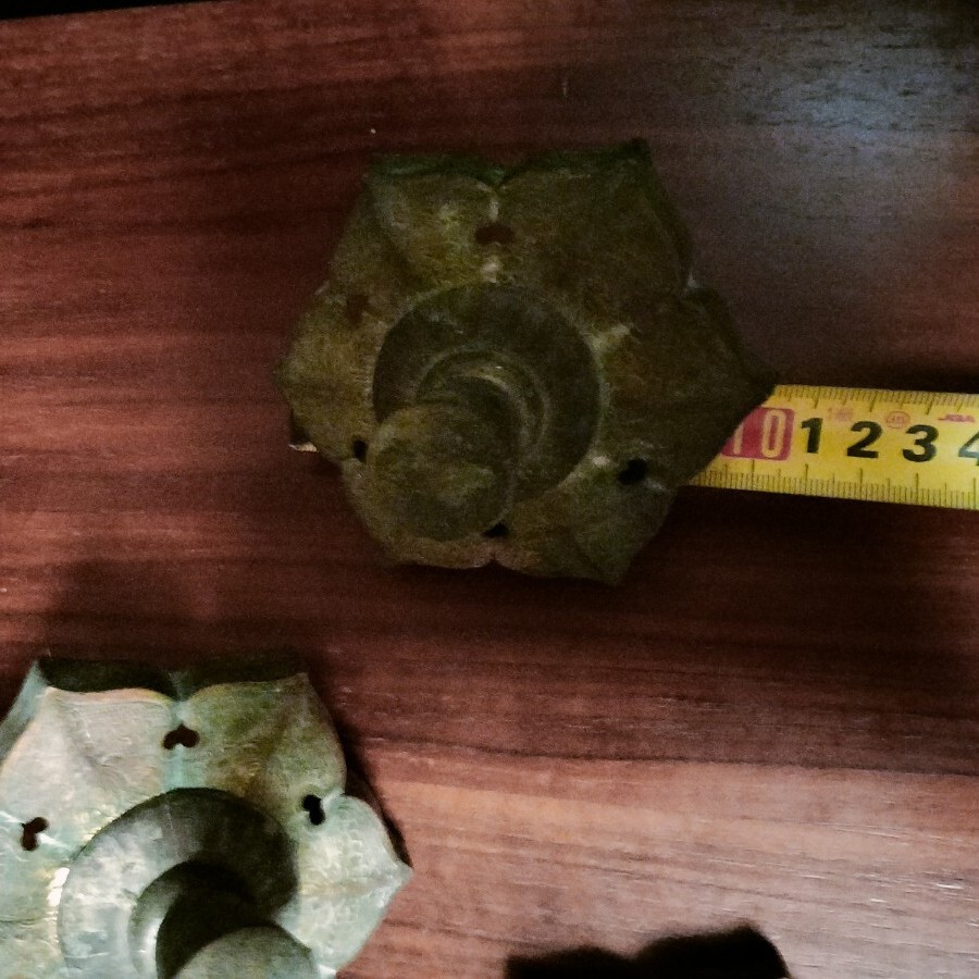 仏教寺社金物 時代金物 銅製 六葉釘隠し 三点 | 釘隠 金具 古道具 神社仏閣 旧家解体現場 古民家再生