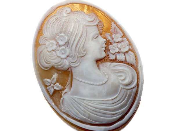 美しい女性像を繊細な彫刻で演出した素敵なシェルカメオルースです!