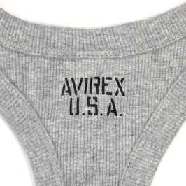 肌触りのよい厚手の生地を使用し、身体の動きにフィットします。肩や脇、裾は丈夫な2本針ステッチで縫製。後ろ首元に「AVIREX U.S.A.」の文字がプリントされています。