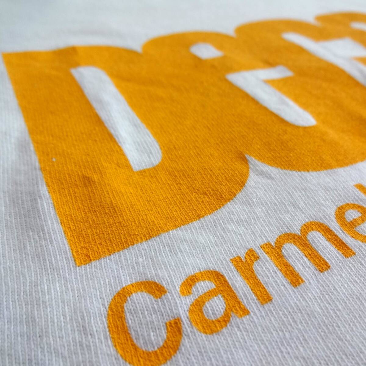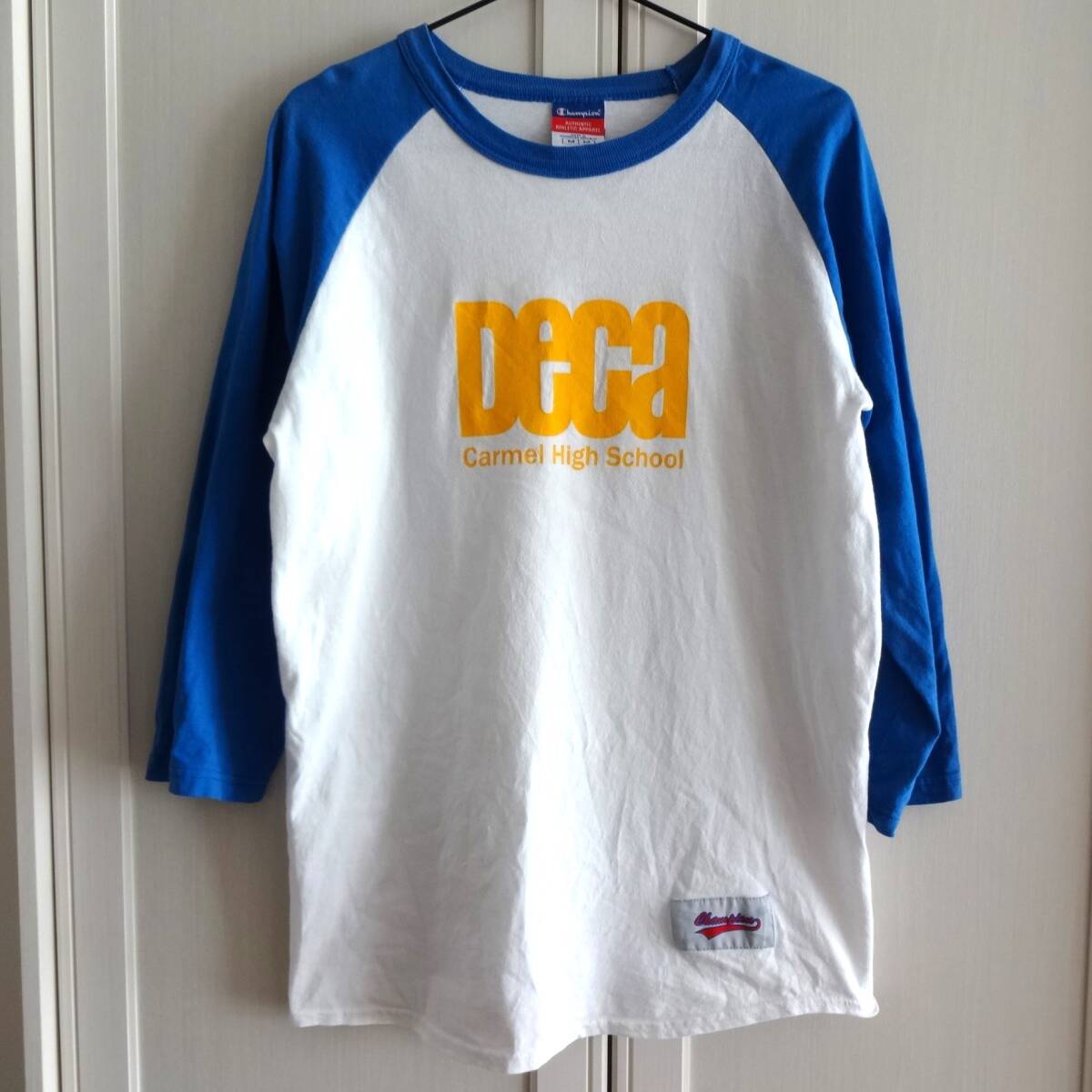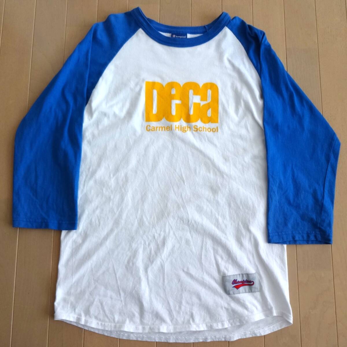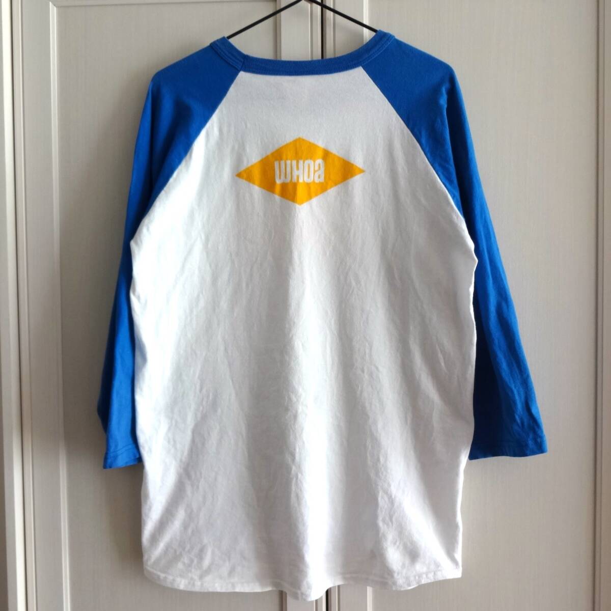 ラグランスリーブで黄色のプリントが映えるTシャツです。