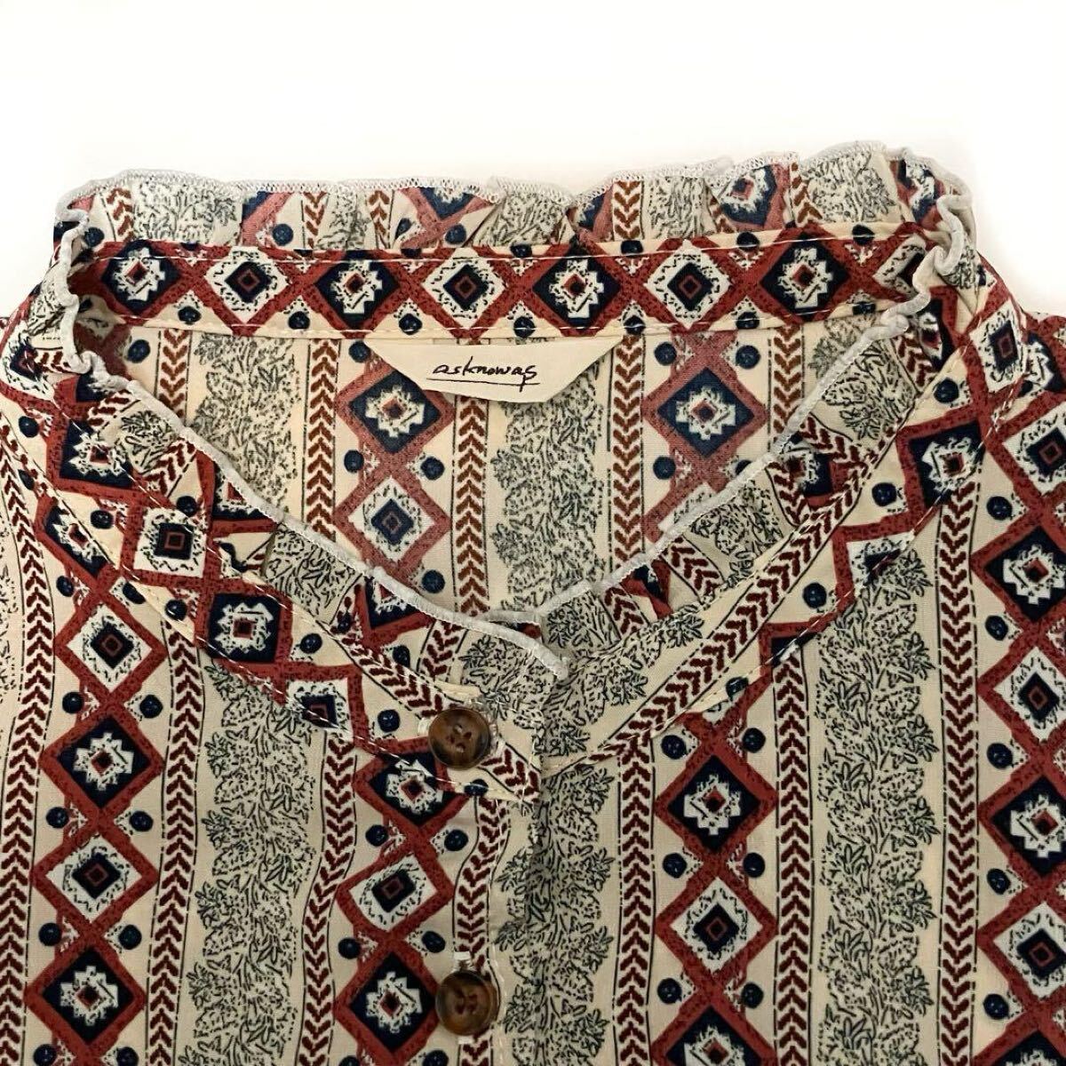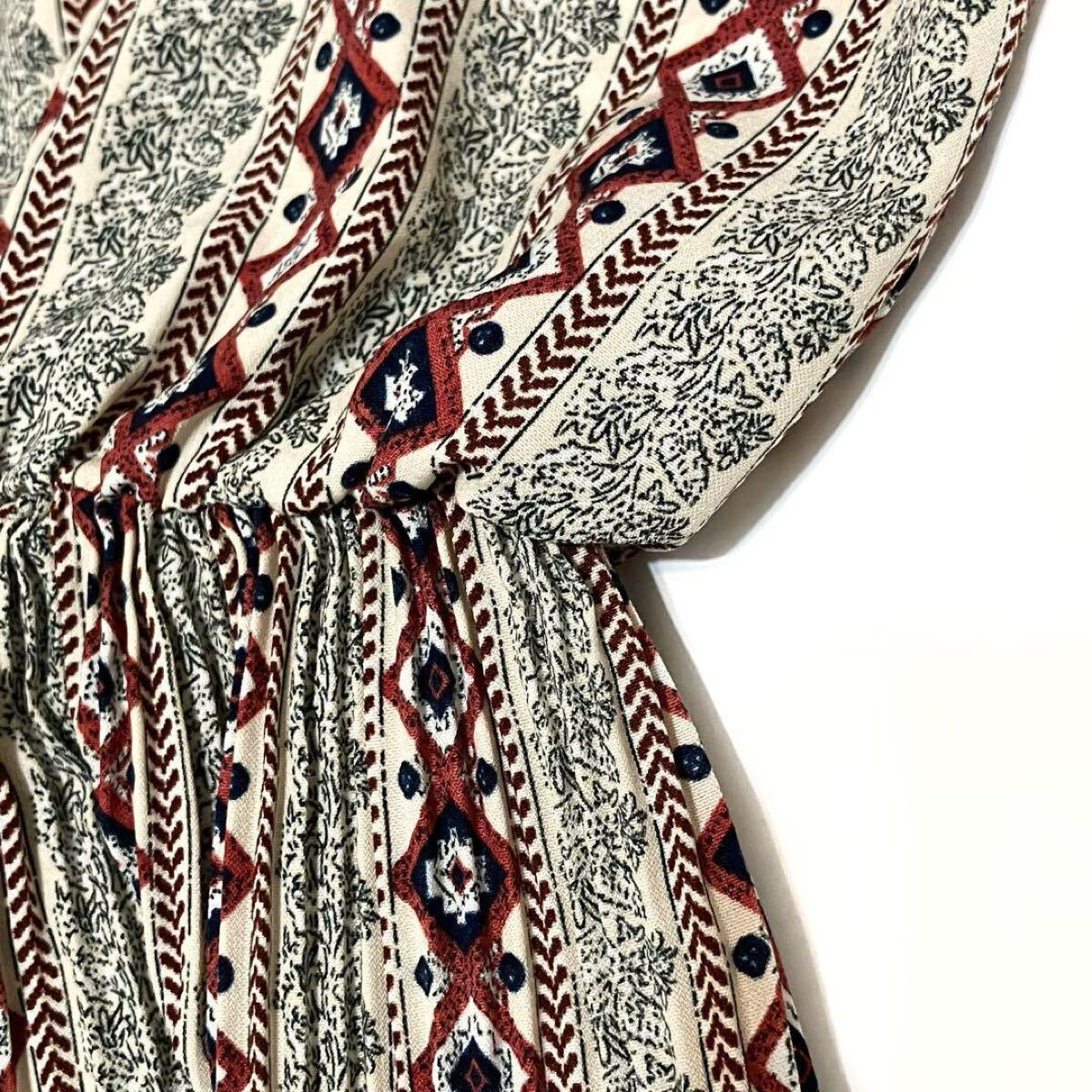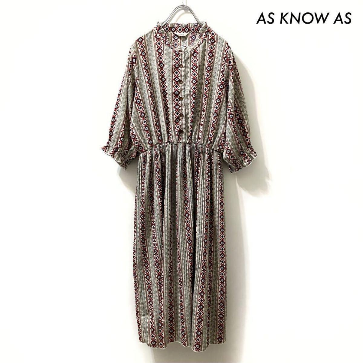 AS KNOW AS アズノウアズ★総柄 半袖ワンピース チロリアンテープ模様