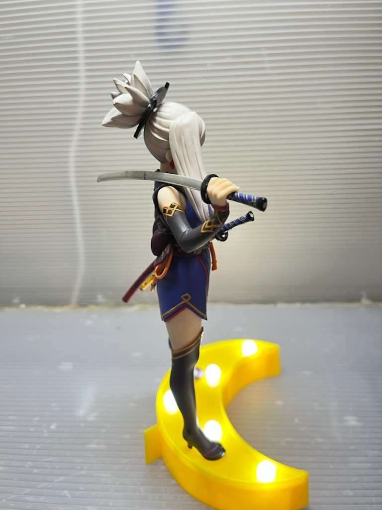 フリュー FGO Fate/Grand Order サーヴァントフィギュア セイバー/宮本武蔵 ブラッシュアップ&LED発光台座カスタム品 【商品説明】 セイバーのサーヴァント、宮本武蔵(新免武蔵守藤原玄信)が登場! 【商品仕様】 サイズ:全高約18cm 【商品状態】 《状態・可》・・・・・・箱なし中古品です。全体をウェザリングマスターとつや消し使ってブラッシュアップさせたカスタム品です。台座もLED発光カスタム仕様です。中古品ですので多少の擦れや微細な色移り等はご了承ください。メンテナンス・クリーニング済みですので目立つ汚れ・埃の付着はございません。 ※評価に関しましては、多忙のためこちらから基本的には致しません。評価のお求めの場合は商品到着後ご連絡ください。 ※出品システム上、匿名発送のラベルがついておりますが発送方法は基本的に佐川急便となります。例外として送料都合上、九州地方・四国地方、離島、沖縄の方はおてがる版ゆうパックによる匿名発送となります。それ以外の方は佐川急便発送ですのでおてがる版ゆうパックは選択しないでください。 ※システム上yahooフリマの方も閲覧できるようになっておりますが、上記記載どおり基本的に佐川急便となりますので匿名発送希望の方はご購入ご遠慮ください。購入された場合は匿名発送以外での発送承諾とみなし指定の発送方法に従っていただきます。 ※値下げ交渉はNGです。 ※取り置き不可です。 | |||