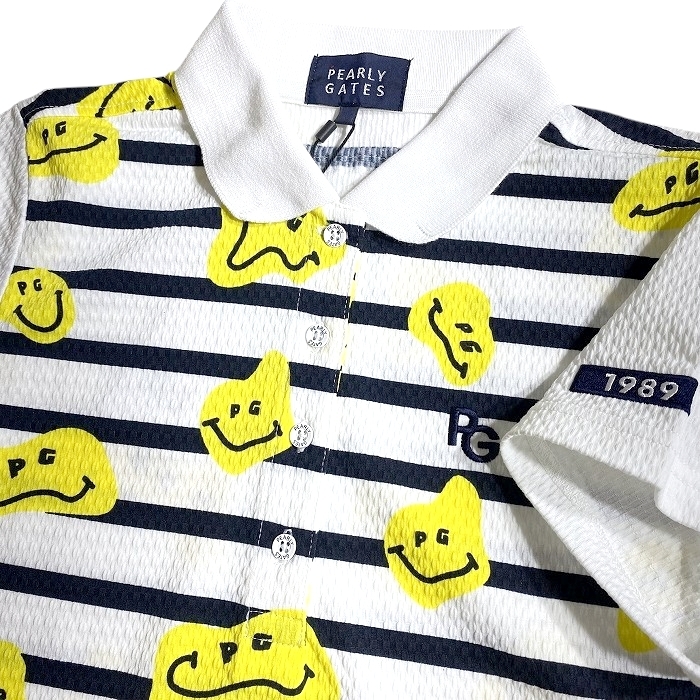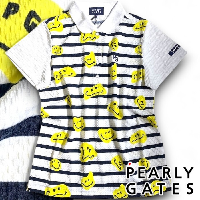 | PEARLY GATES パーリーゲイツ 新品 定価1.9万 日本製 TOKE NICO ドライタッチ 吸汗速乾 Peサッカー ニコちゃん×ボーダー柄 総柄 ストレッチ 半袖 ポロシャツ ゴルフウェア レディース 2260614 121 0 ▲022▼50612w06 | |||