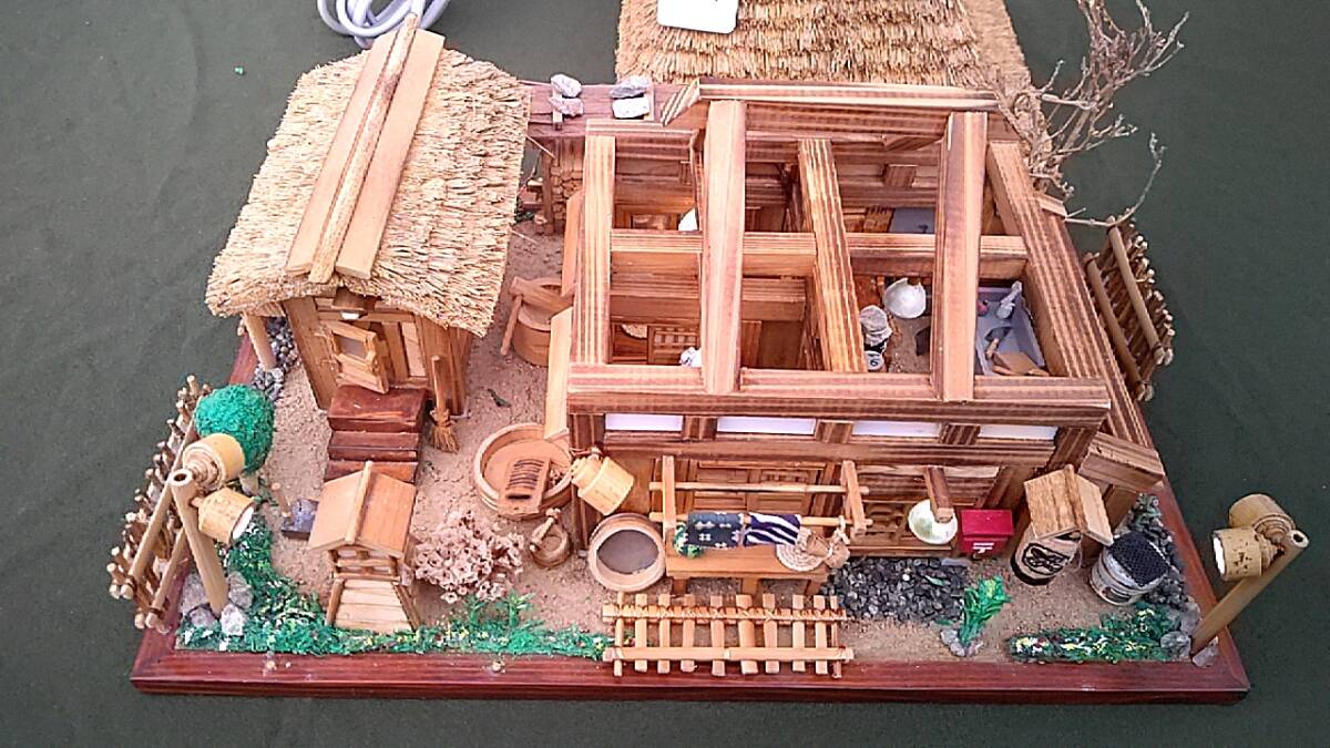 ★日本の古民家:藁葺屋根:家屋★ジオラマ模型:手作り★A-A★