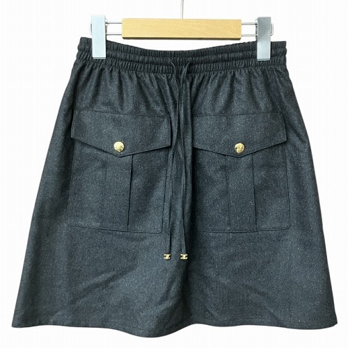 セリーヌ CELINE トリオンフ カシミヤ ミニ スカート カーゴポケット 灰 濃灰 チャコールグレー 36 S位 2J506561F ■GY41 レディース