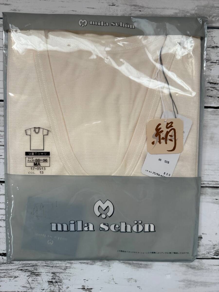 ミラショーンの紳士用下着、シルク100%のU首Tシャツ、サイズMAです。 | ||