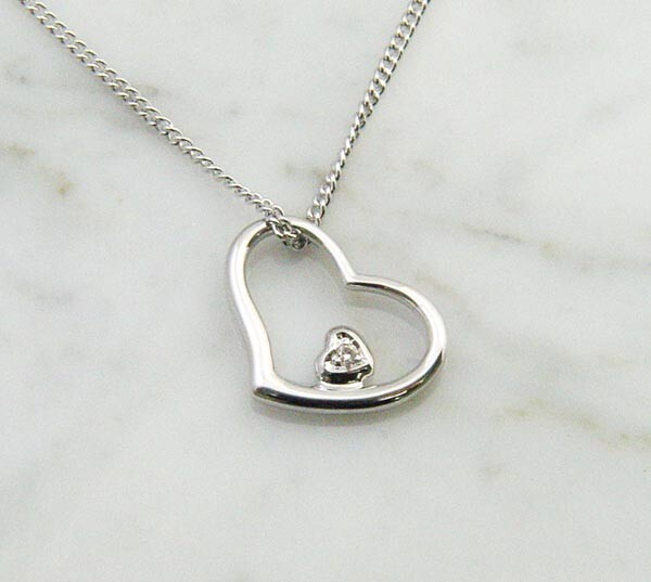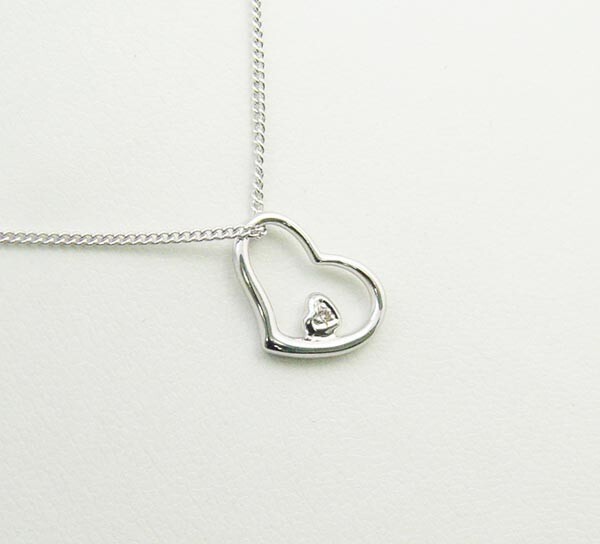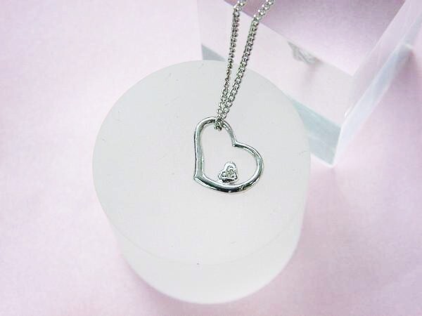 ◆オープンハートのラインの中に小さなハートにダイヤモンドをあしらったお洒落なデザインのペンダントです。 ◆プラチナ仕上げだからとても綺麗! ◆小粒ですが天然のダイヤモンドを使用してポイントのお洒落に! ◆4月の誕生石「ダイヤモンド」をワンポイントに使用していますから お誕生日のプレゼントにも最適です ◆数量限定品ですので、お早めに! ※市場参考価格 11、000円 ※商品状態 新品未使用 ※送料無料!ギフトラッピングでお届けいたします! |