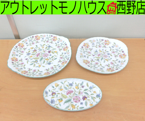 MINTON/ミントン HADDON HALL/ハドンホール プレート三種セット 花柄 グリーン ボーンチャイナ BBプレート オーバルプレート 札幌 西野店