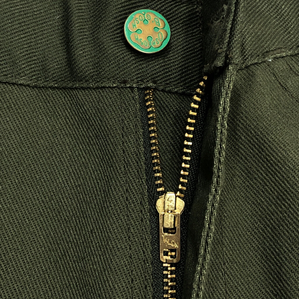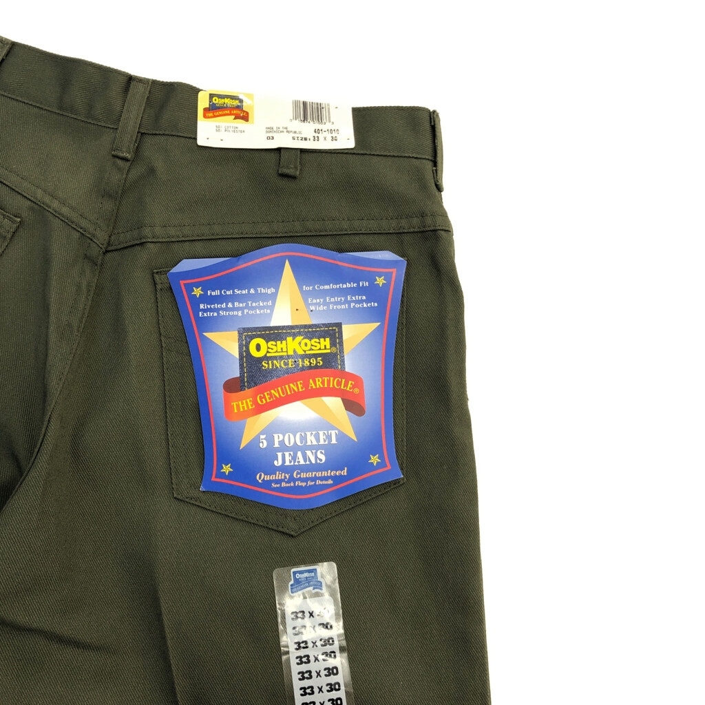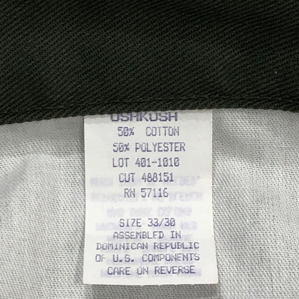 [商品管理番号] U2599 [ブランド] OSHKOSH/オシュコシュ [サイズ] W33 L30 [実寸サイズ] ウエスト:約80cm 股上:約29cm 股下:約77cm わたり幅:約33cm 裾幅:約23cm [主な素材] 表地 : コットン [色] オリーブ [仕様] 90年代 デッドストック [状態] 特記事項:変色 | |||
