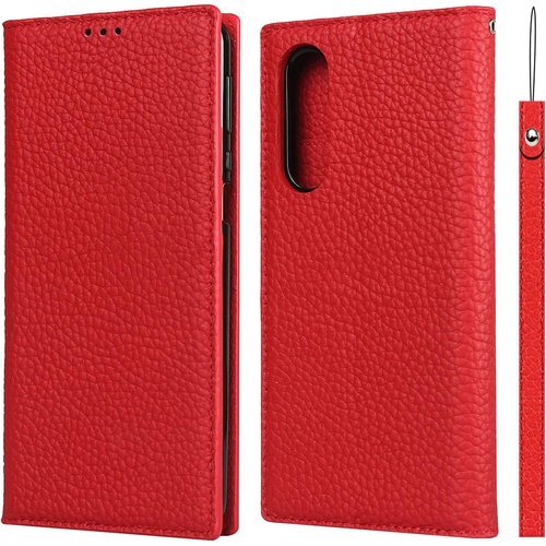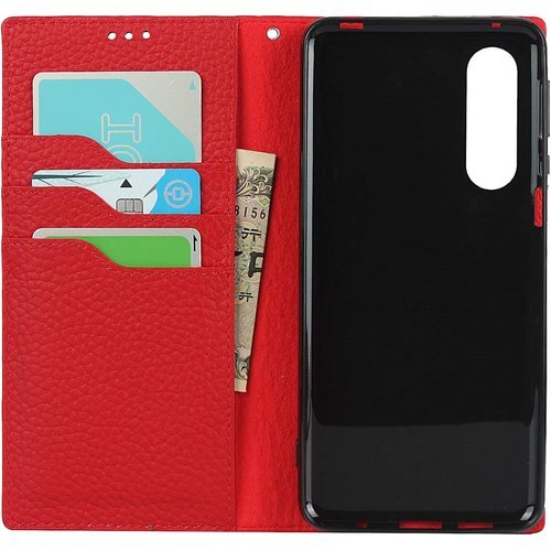 Eastwave AQUOS Zero5G Basic DX SHG02 ケース 本革 zero 5g basic 手帳型 ケース 財布型 カバー 手帳式 牛革 本革 柔らかい 本皮 高質 スプラットホール付き スプラット同梱 内蔵マグネットカード収納 - レッド 631