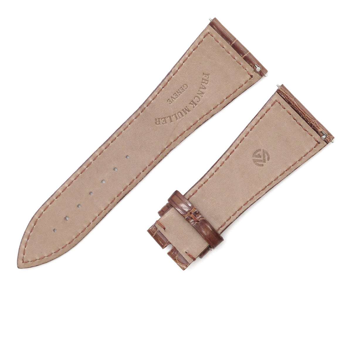 フランクミュラー 腕時計パーツ マスタースクエア 6000 H用 クロコバンド クロコダイル ブラウン 未使用 純正 替え シャイニー 艶 26mm ブ