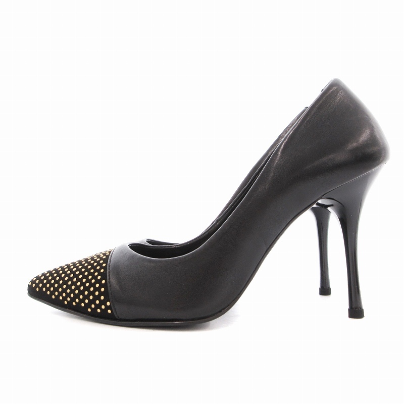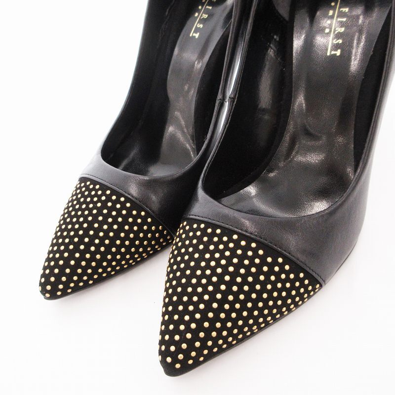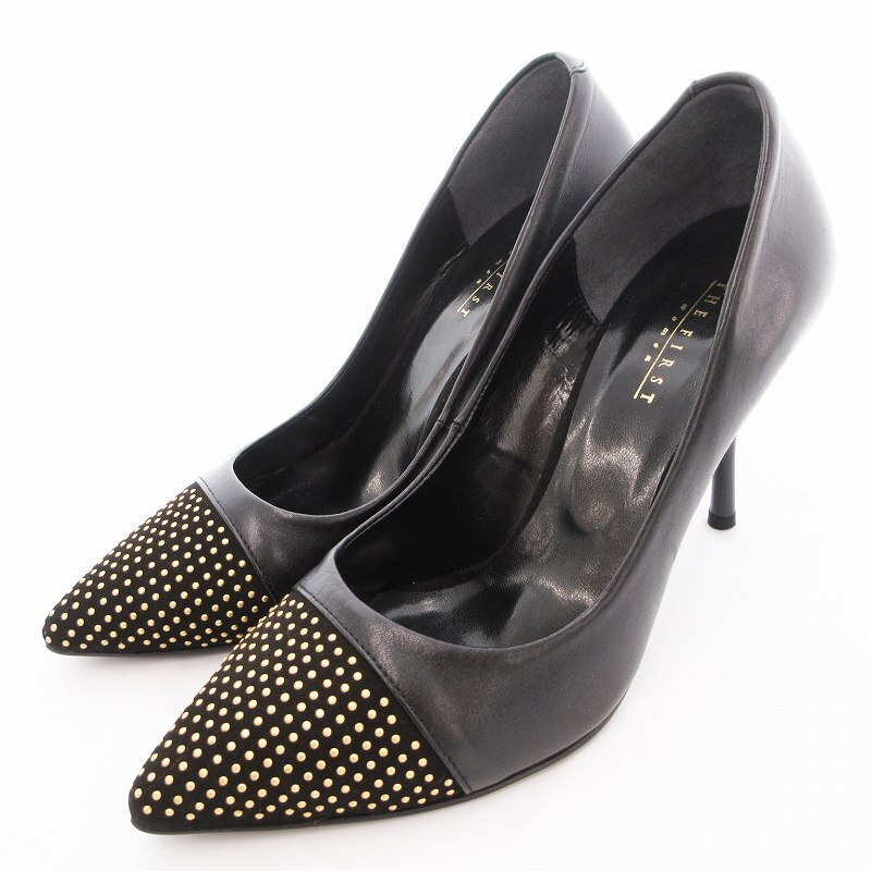ザファースト THE FIRST パンプス ポインテッドトゥ スタッズ 36 黒 ブラック /UO ■SH レディース