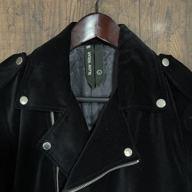 A383◇SLOW WEAR | スローウェア ベロアライダースジャケット ブラック メンズ Lサイズ 中古品