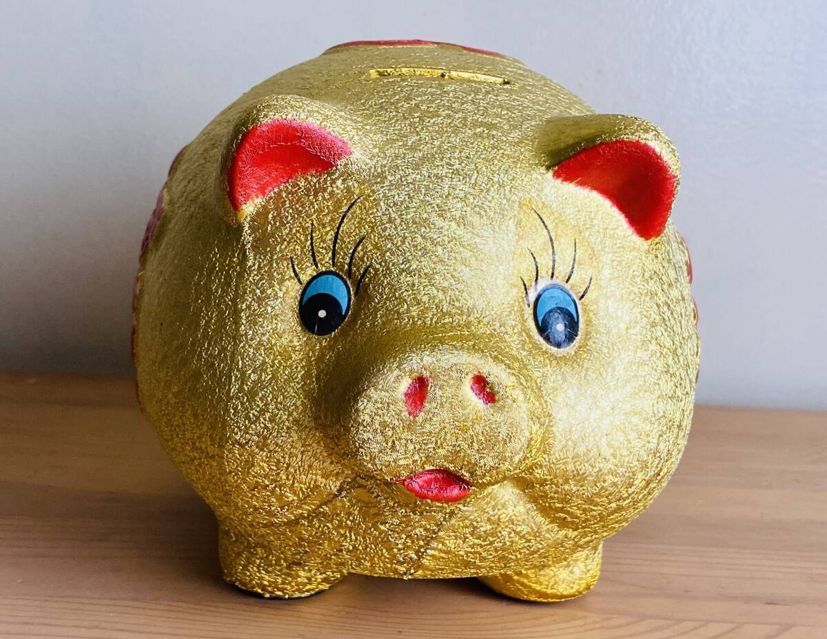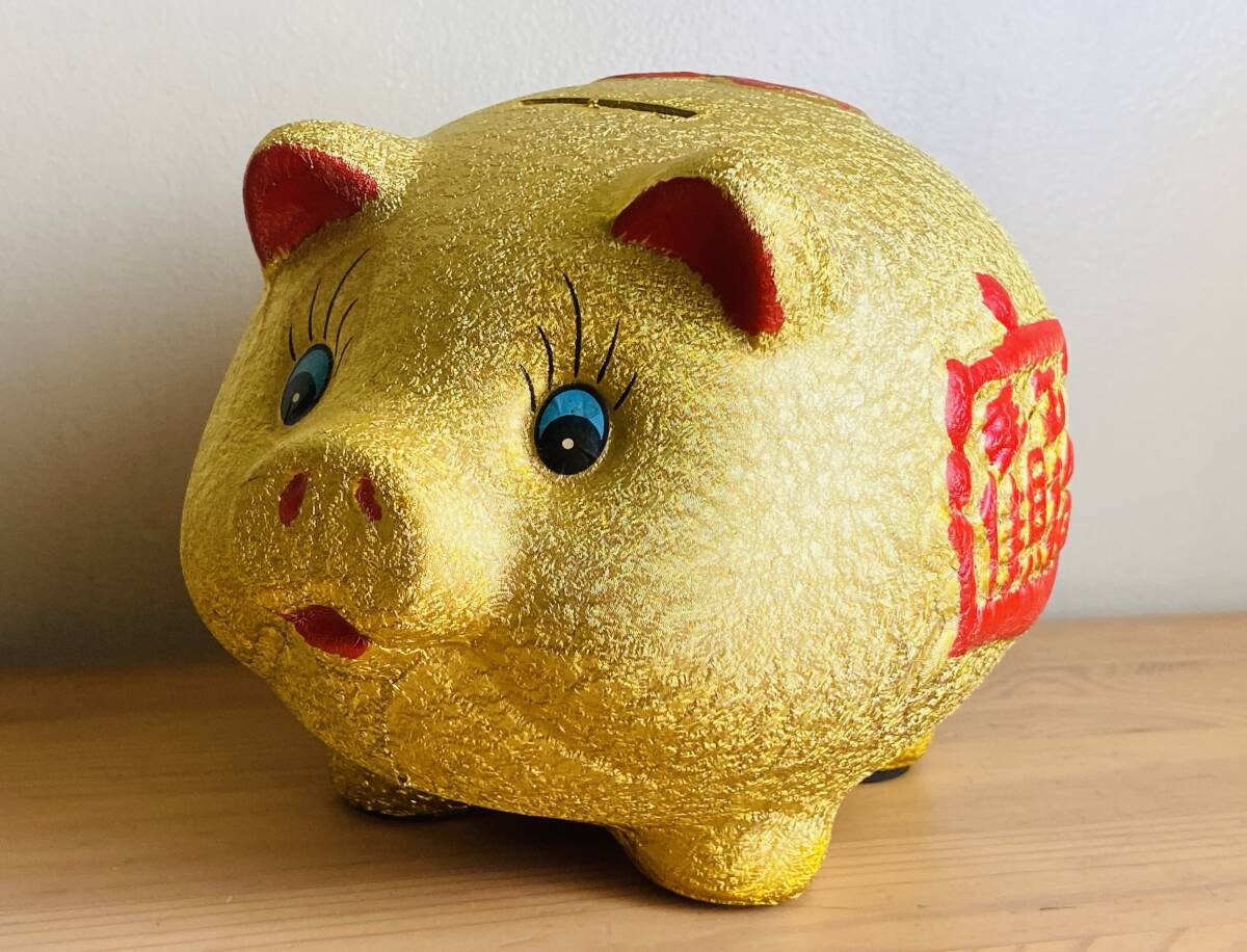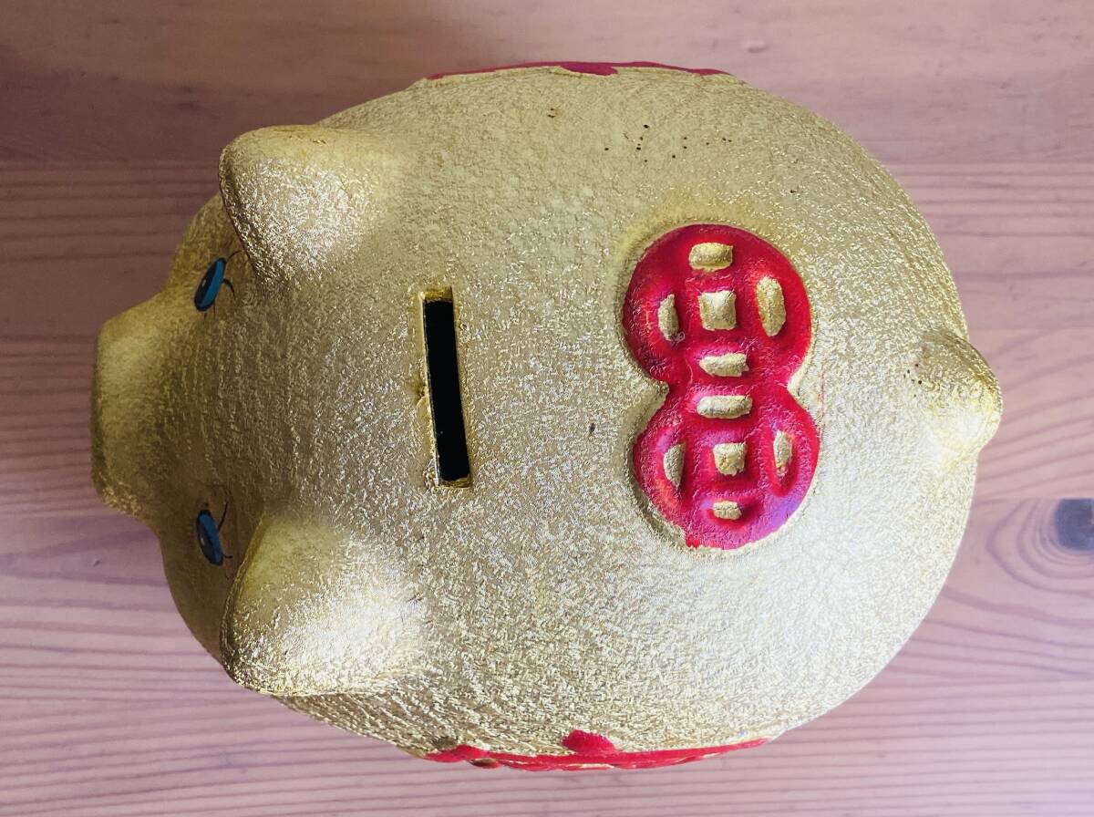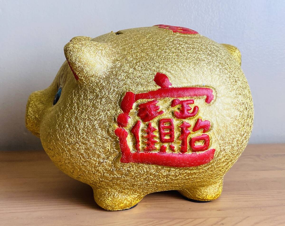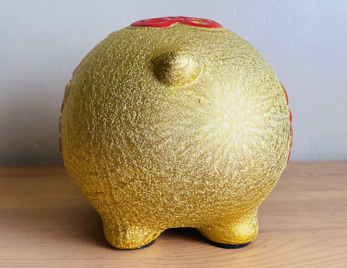 【開運!縁起物】中華風ゴールドのブタの貯金箱