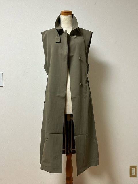 M 超特価 カーキ色 新品未使用品 送料無料 ベスト ロングジレ ノーカラージャケット コート ロングベスト ジャケット レディースコート