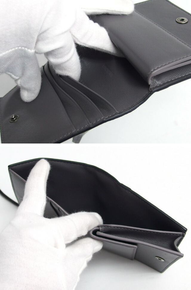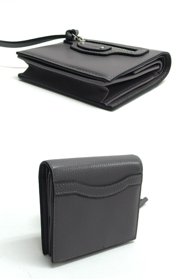 | 商品名 | ネオクラシック 二つ折りコンパクト財布 コンパクトウォレット ミニ財布 レザー グレー ホック式開閉 ホック式小銭入れ シルバー金具 640111 レディース メンズ |