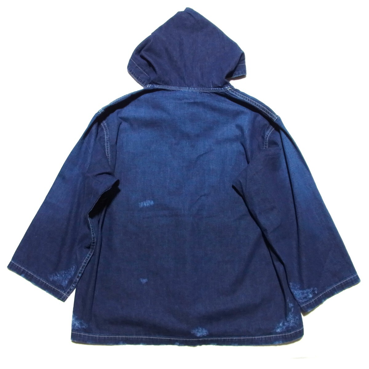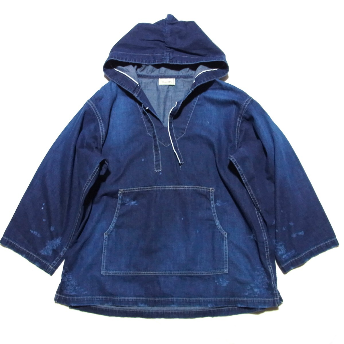★コメント…セルビッチデニムを使用したメキシカンパーカ。ゆったりと開いた首元とボリュームのあるフード、フロントのポケットが特徴。身幅やアームホール、袖幅も全体的にゆったりとしたシルエットです。