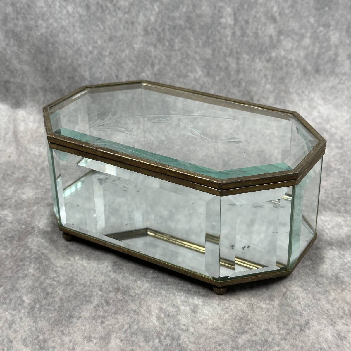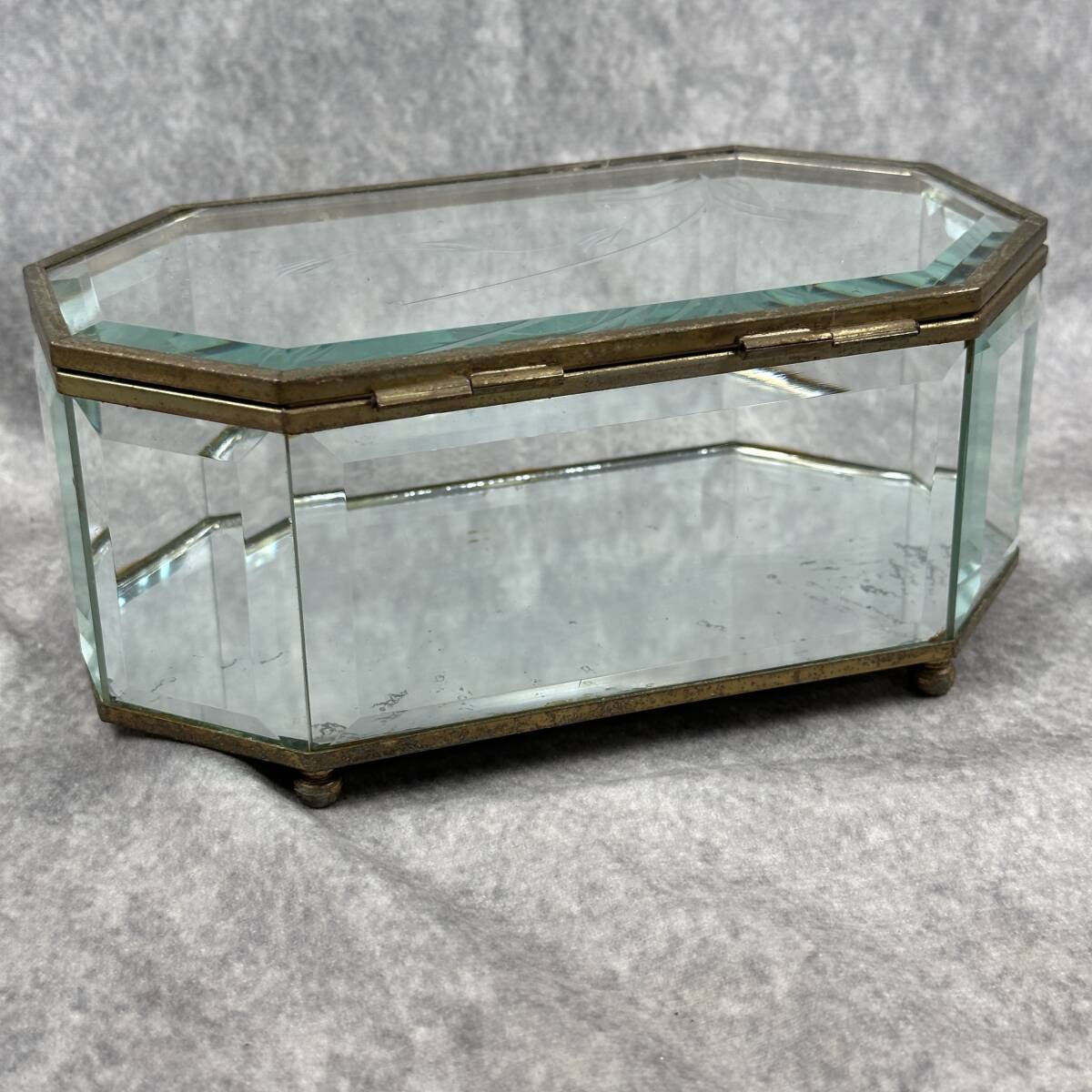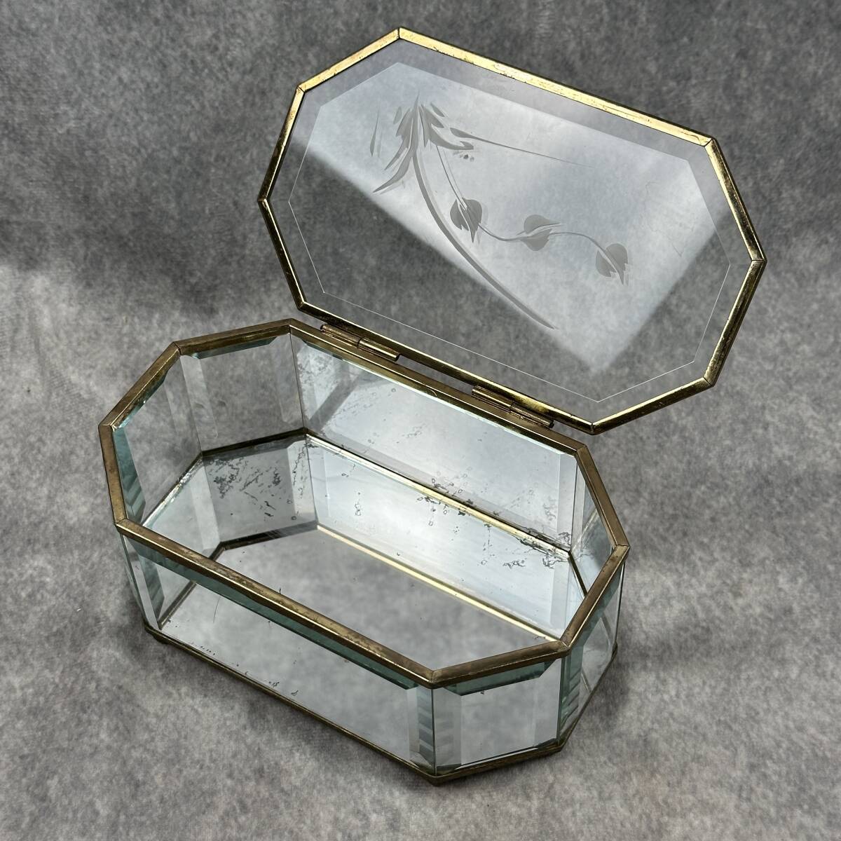 商品名:アンティーク ガラス張り ジュエリーケース 鏡張り 昭和レトロ 八角形