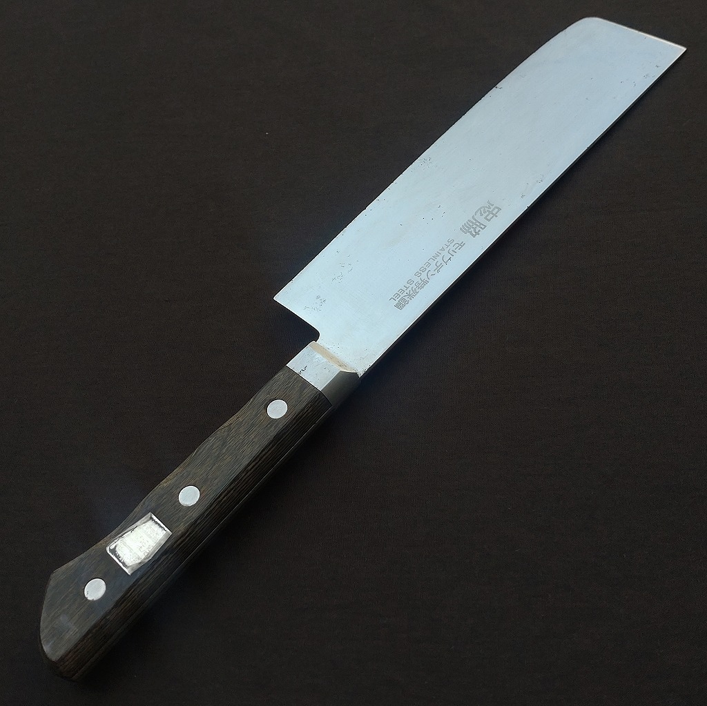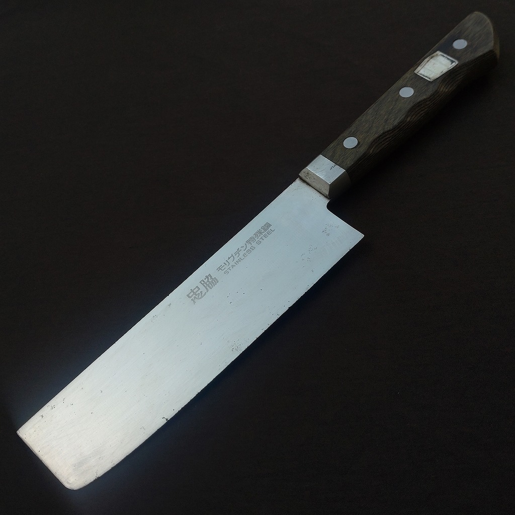 菜切包丁 洋包丁 忠脇 モリブデン特殊鋼 STAINLESS STEEL 刃長約160㎜ 両刃 庖丁 刃物 Japanese Kitchen knife Nakiri knife 【6113】