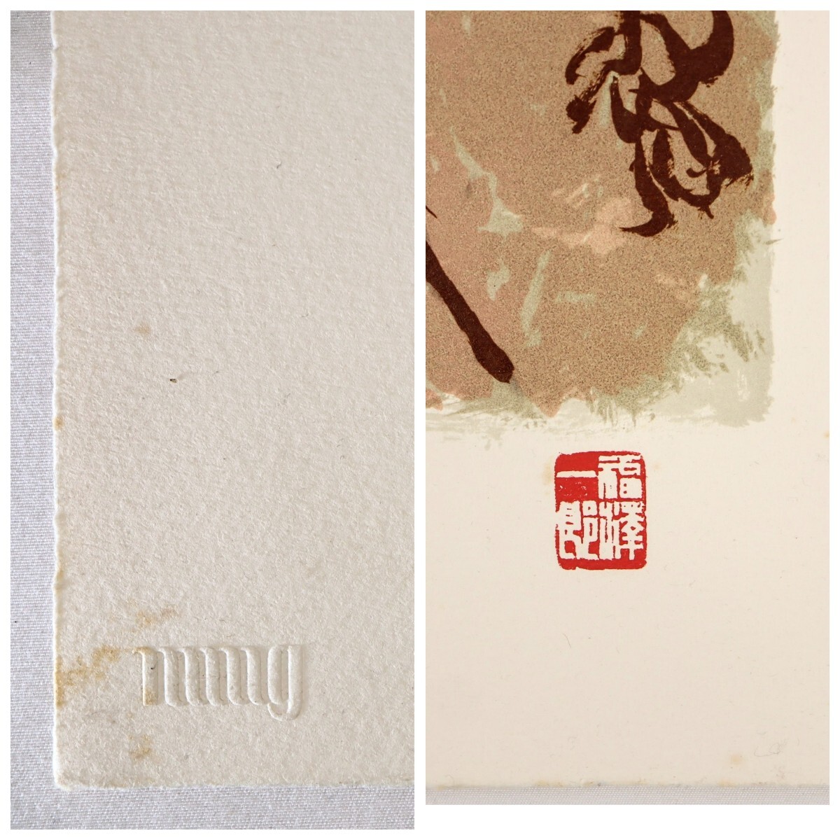真作 福沢一郎 リトグラフ「ニンフと牧神」画寸 43×32cm 群馬県出身 多摩美大教授 古代の壷絵から図像を引用 独特な世界観で直截的 10975
