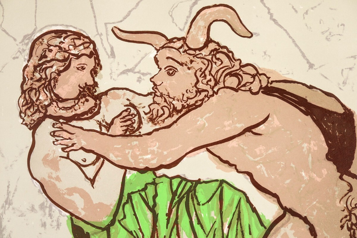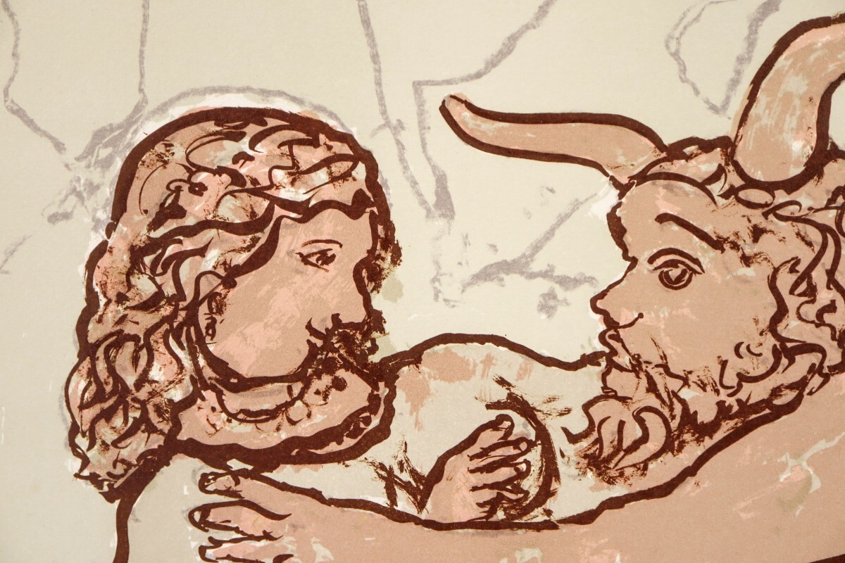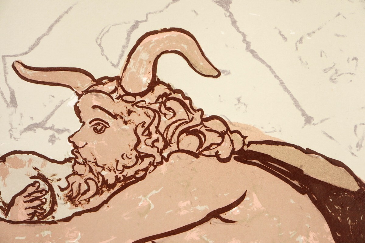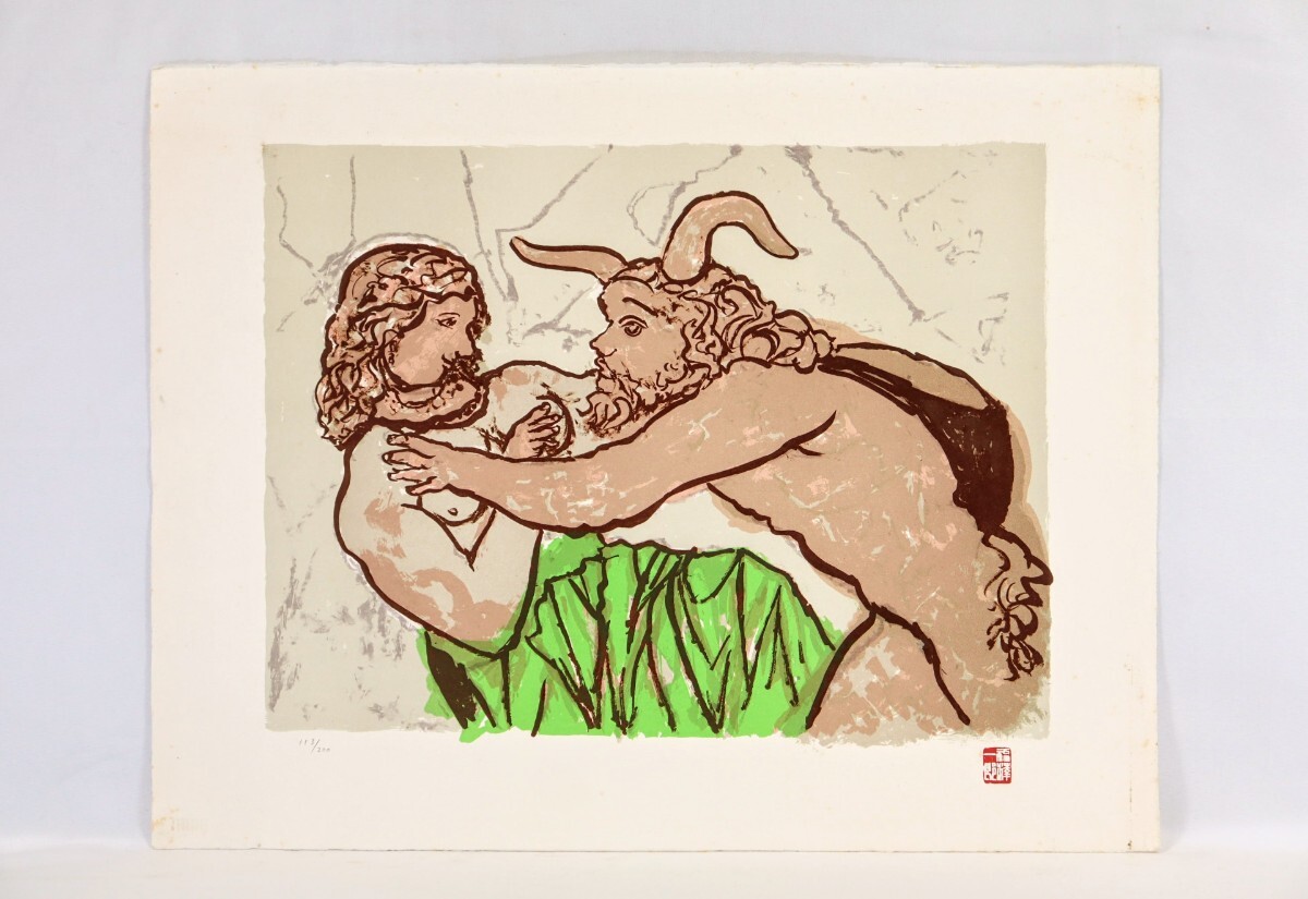 ★福沢一郎 リトグラフ「ニンフと牧神」★